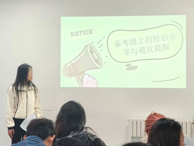随后,韩鹏燕同学以“过来人”的身份,分享了实用的备考技巧与情绪管理心得。她着重强调了规划与方法的重要性,建议将总目标拆解为月计划、周计划甚至日计划,通过“打卡”形式保持学习动力,真正做到“早规划,细落实”。针对大家普遍关心的自荐生测试难度问题,韩鹏燕结合自身观察给出解答。她表示,各招生院校的专业测试核心是考查考生是否具备攻读该专业的基础知识与潜力,所以建议备考同学充分利用历年真题开展针对性复习,有效缓解了同学们的备考焦虑,增强了大家的备考信心。