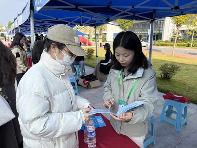 张淼淼老师带领2026届毕业生来到优质企业展位,由企业代表就公司的人才培育体系、职业发展通道等方面进行介绍,帮助同学们了解企业优势,同时,她还鼓励同学们结合自身专业与职业规划进行提问,更好地帮助同学们跨越信息壁垒,直观、深入地了解就业形势,对标自身职业规划。