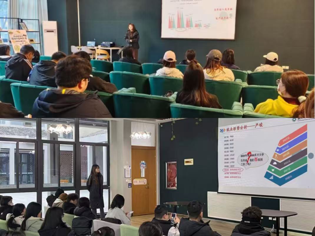 而针对毕业生普遍面临的焦虑情绪与选择困境,张淼淼、黄晓、赵欣欣、高关如老师重点围绕资源对接与心理疏导展开讲解。通过往届生成功案例的分享,传递“先就业后择业”的务实理念,并详细介绍了学校就业信息网、校园招聘会、企业宣讲会等官方就业渠道的优势,有效缓解学生的就业压力。正如高老师所说“无论最终能否收获心仪的offer,无论结果是否圆满,这段求职经历本身,都将是人生旅途中一笔宝贵的财富。”希望同学们都能在求职路上坚定前行,将求职视为探索自我、明确方向的成长过程。