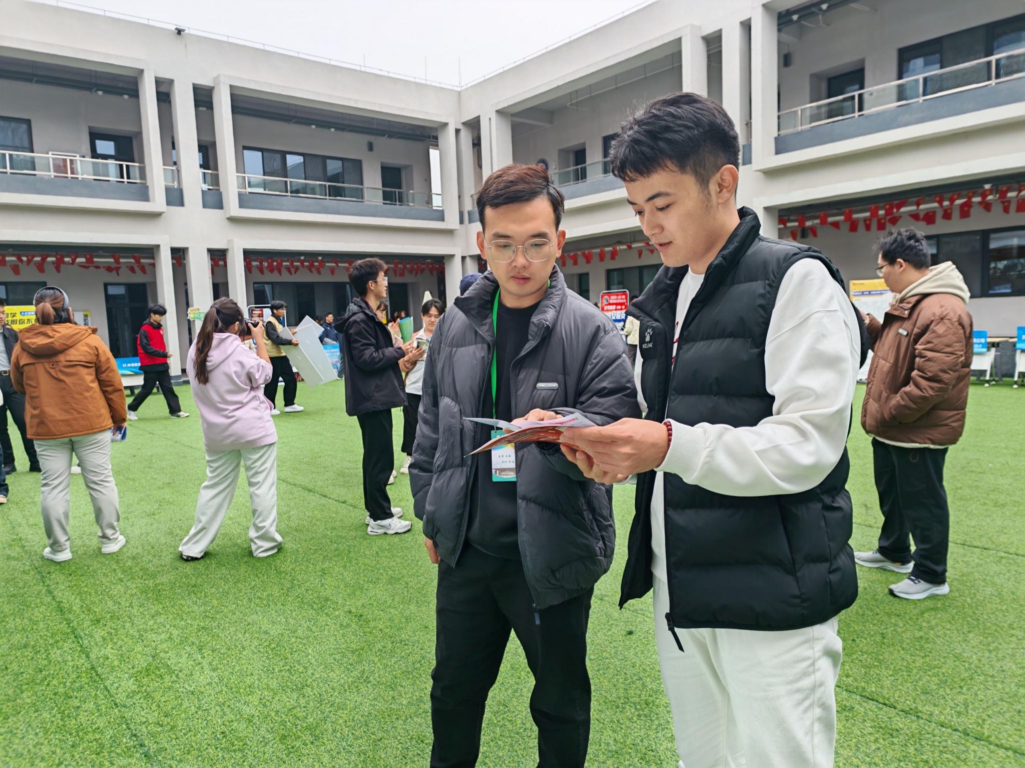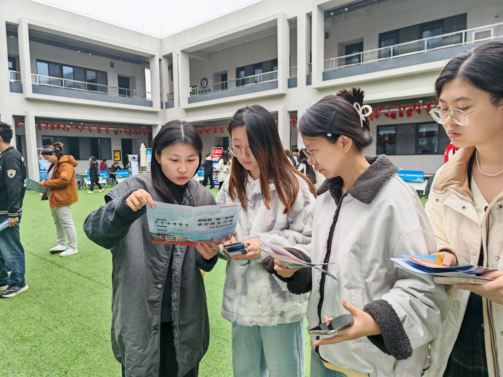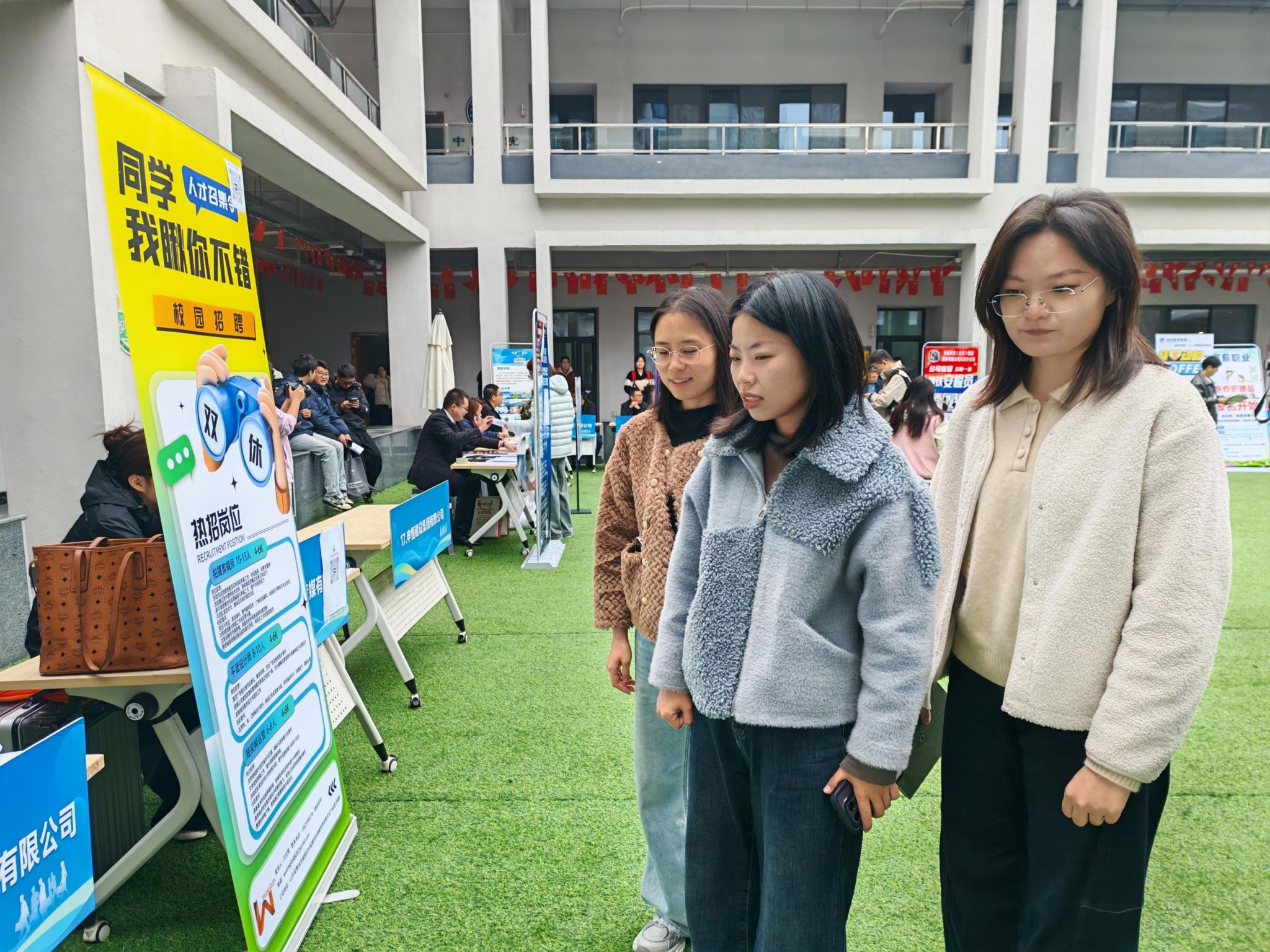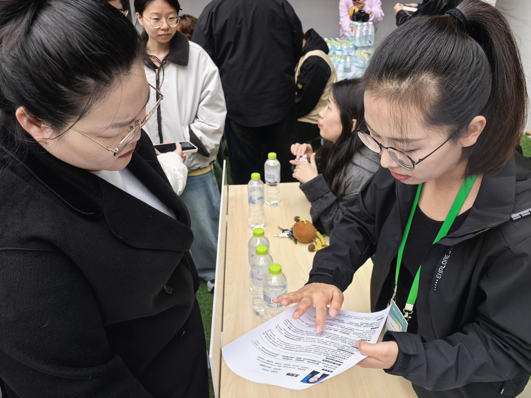 赵欣欣老师在讲解中强调:“读懂企业信号,才能精准匹配”,重点突出了企业宣传册的重要性。其聚焦企业宣传册上相关内容向学员们传授了快速捕捉企业信息、灵活调整沟通方式等实用技巧,帮助同学们高效筛选真正适合自己的岗位。同时她鼓励大家结合专业背景与发展规划,主动向企业代表咨询人才培养体系与职场晋升方式等关键问题,以全面把握职场信息,更清晰地找准自我定位与发展方向。活动全程,除了师生间、校企间的交流,老师们也时时关注岗位细节,并始终保持密切沟通,形成“岗位信息共享,指导策略互补”的联动模式。