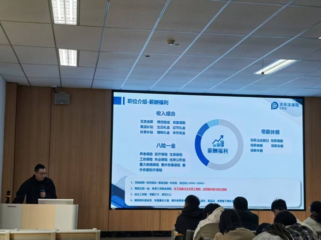 太平洋保险有限公司山东分公司作为保险行业的领军企业,凭借其雄厚的集团背景和数字化转型的领先优势,成为众多求职者关注的焦点。在宣讲会上,公司人力资源代表围绕企业核心竞争力与人才发展需求,从公司发展历程、企业文化、业务范围、招聘岗位及职责等多维度展开详细介绍,为在场同学勾勒出清晰的企业画像与职业发展路径。宣讲会后,代表还针对同学们关心的“职业规划”“行业趋势”等问题进行了一对一解答,并现场接收简历,为有意向加入企业的同学搭建了快速对接的通道。