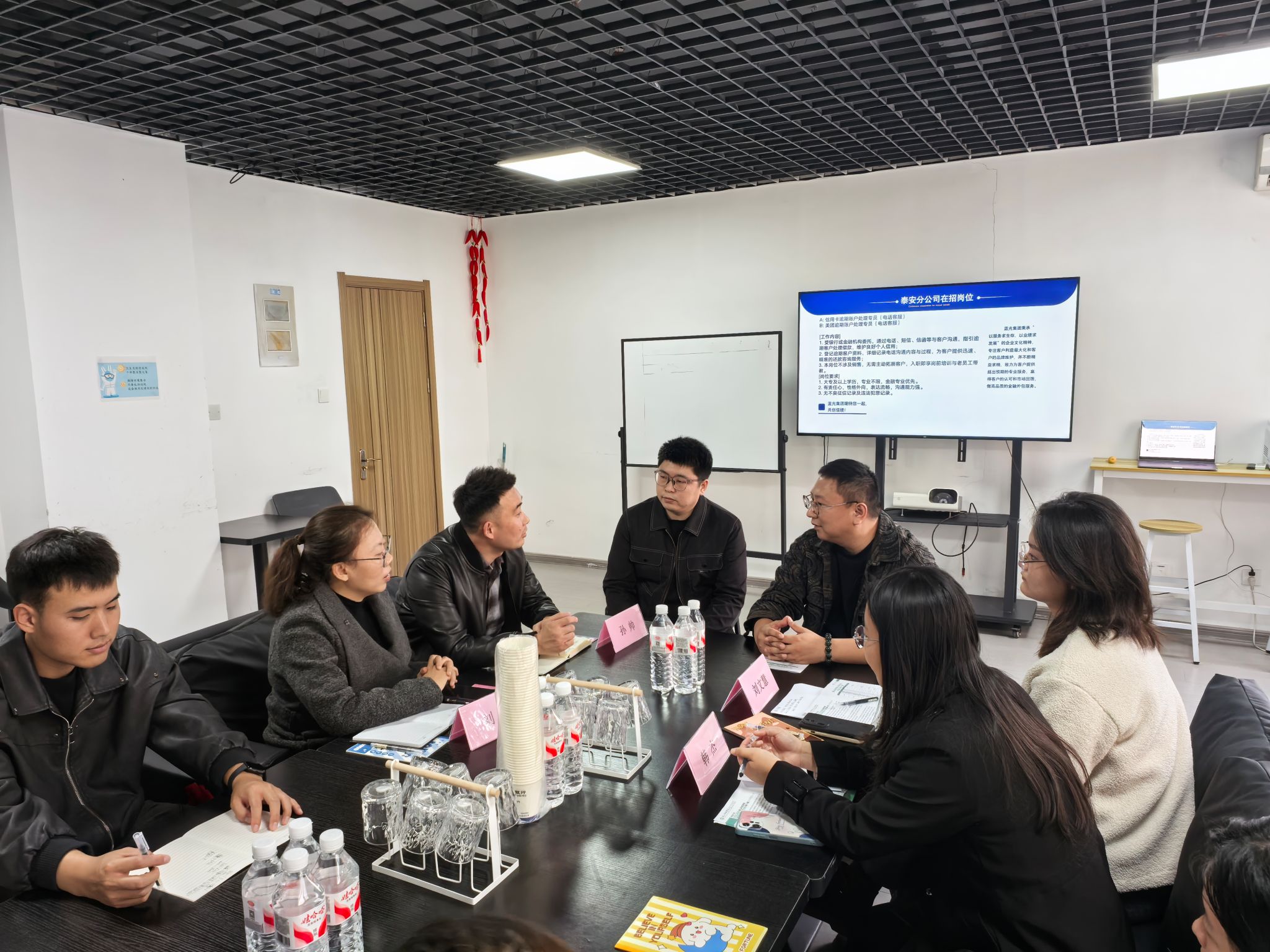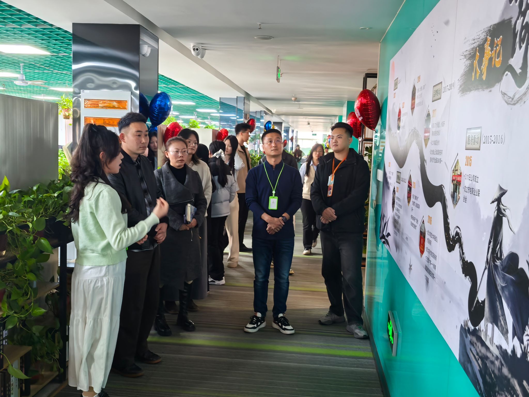 随后,一行人来到蓝光集团。蓝光集团相关负责人带领淬炼商学院一行参观了企业的办公区域详细介绍了集团的发展历程、业务范围和未来规划。蓝光集团现有员工1000余人,在全国23个地市设有分公司,与各大银行、美团等进行合作,主要帮助其降低资产不良率,改善现金流。负责人详细介绍了公司的发展规模、福利待遇及各部门的职能分配,展现了公司在风险管理方面的专业化与科技化水平。双方就数字经济背景下商科人才的能力需求、实习实训基地建设、项目合作等议题进行座谈。