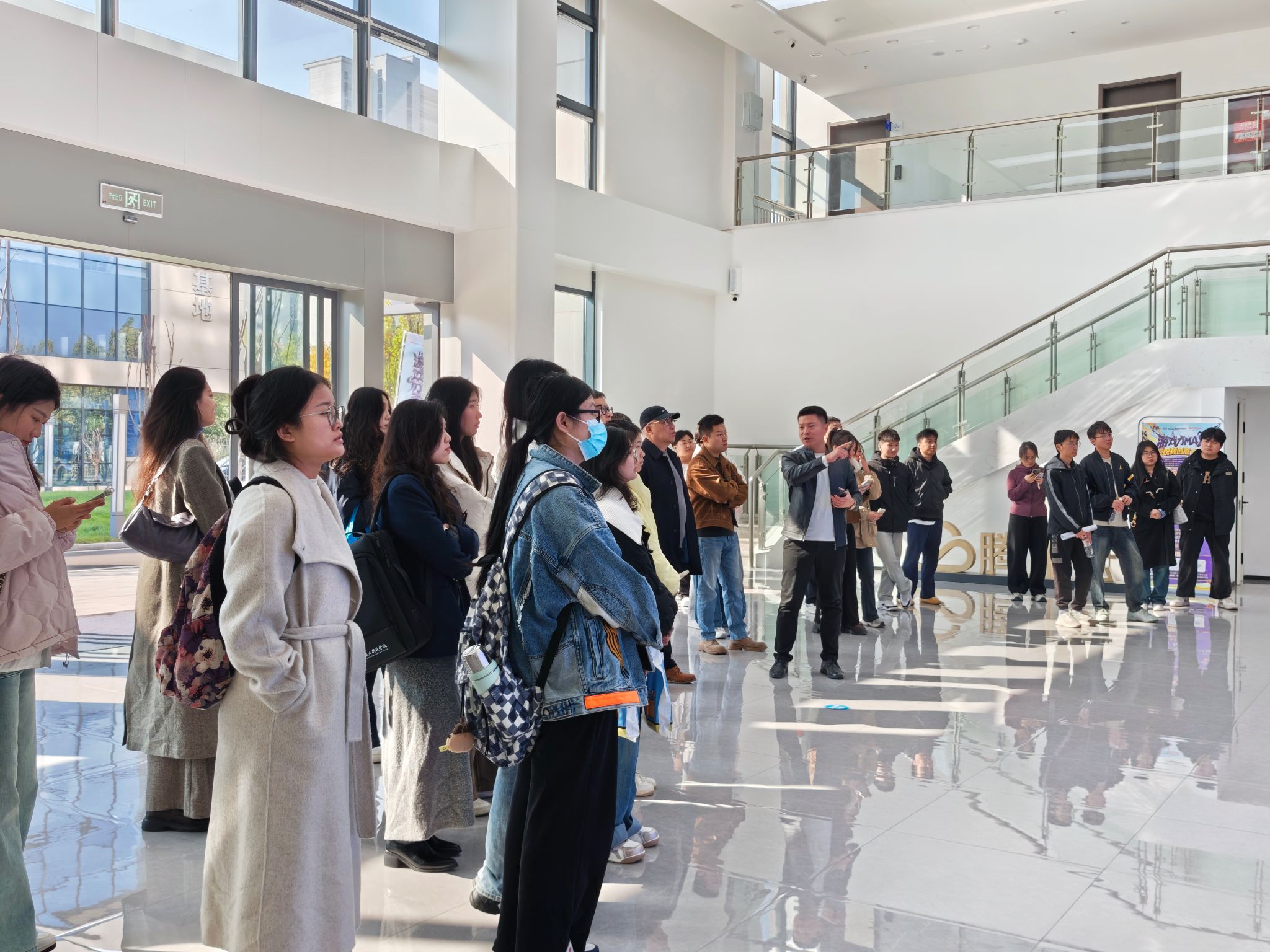 首站来到山东融发数字运营有限公司,企业相关负责人热情接待了师生一行。在负责人的带领下,师生们实地参观了公司数字素养培训基地与数字技术产业学院,近距离了解数字技术在运营场景中的实际应用,直观感受企业数字化发展成果。座谈会上,企业重点介绍了管培生及实习生培养模式,从岗位适配培训、导师带教机制到职业发展路径规划,全方位展示了对青年人才的培养体系。