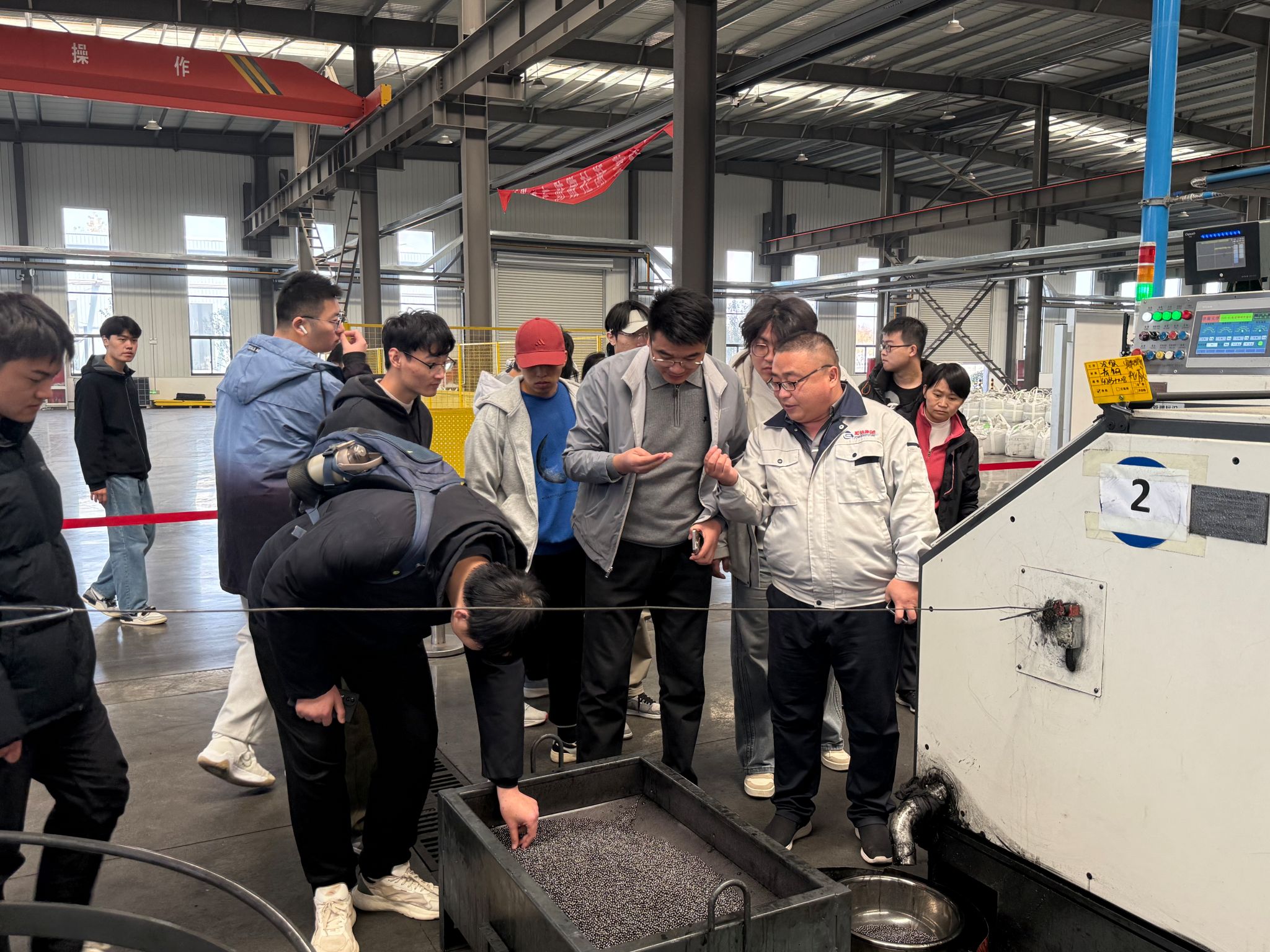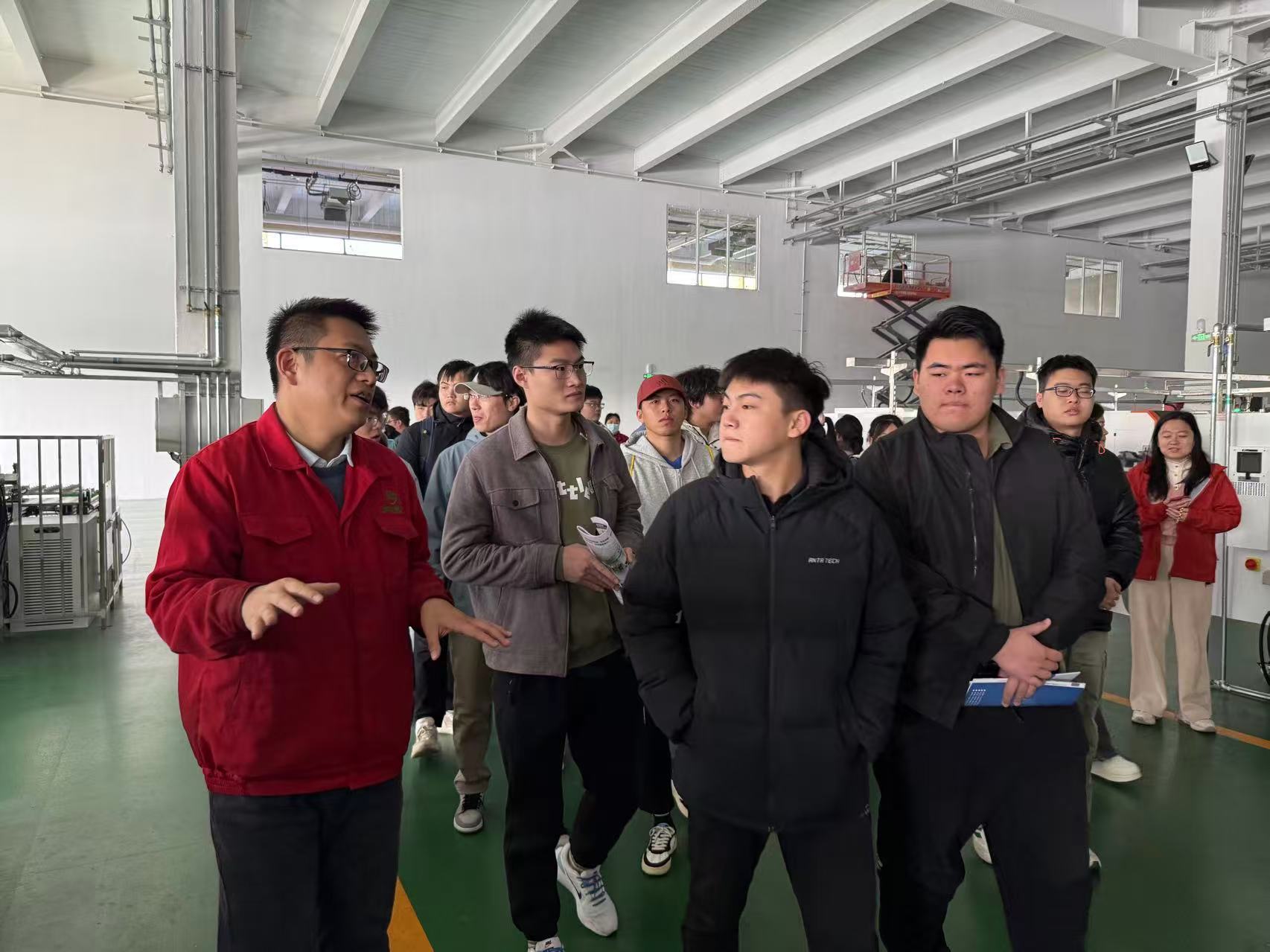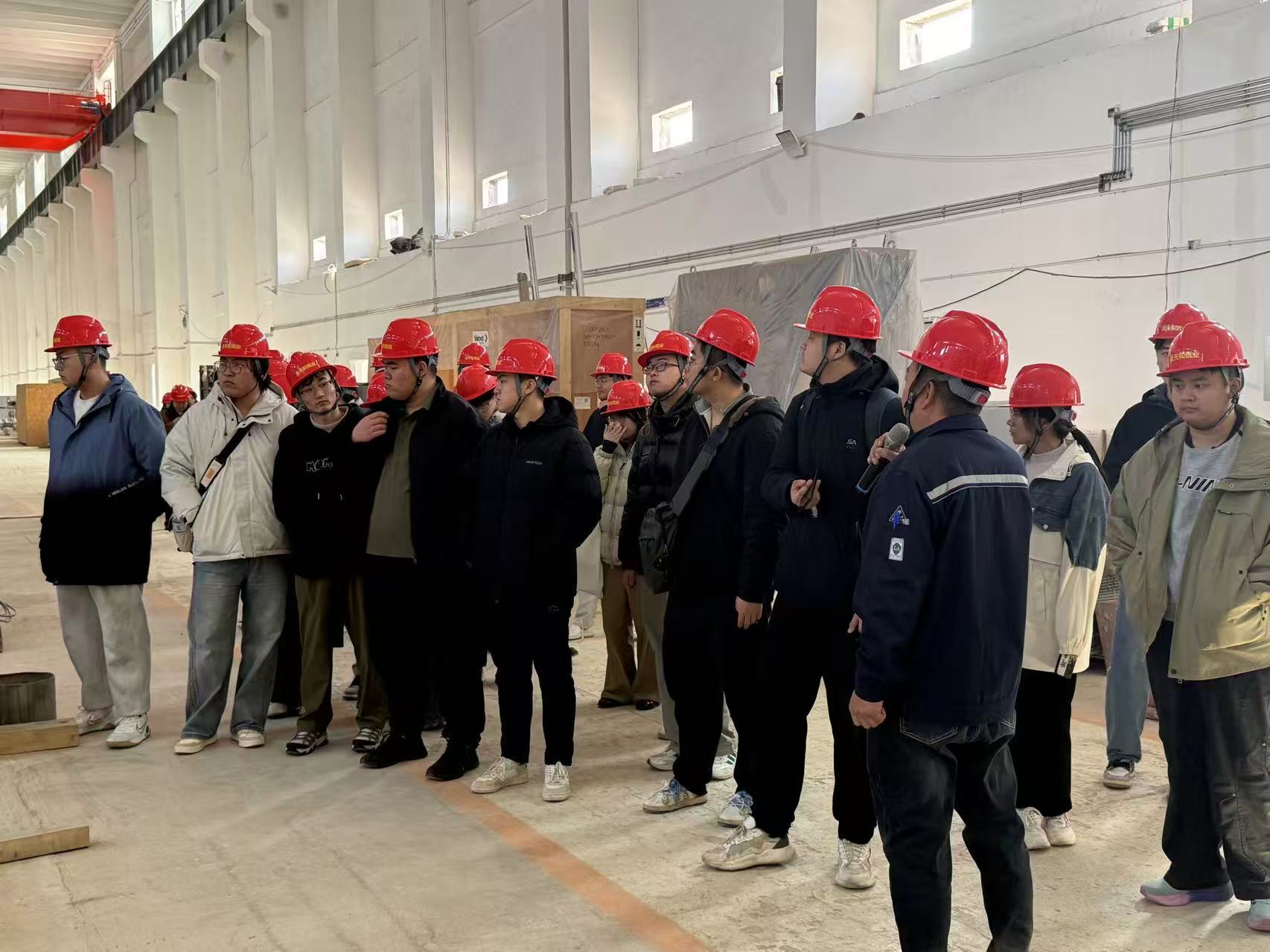 首站抵达山东振挺精工活塞有限公司,企业相关负责人对师生一行表示热烈欢迎。在负责人引导下,师生深入数字化生产车间实地观摩,了解智能设备与数字管理系统在生产流程中的深度融合,切身感受企业以数字化转型驱动效能提升的实践成果。座谈会上,企业详细介绍了当前岗位需求及实习生培养体系,围绕岗前培训、职业发展通道等方面,系统阐释了面向青年人才的全周期培养方案。
