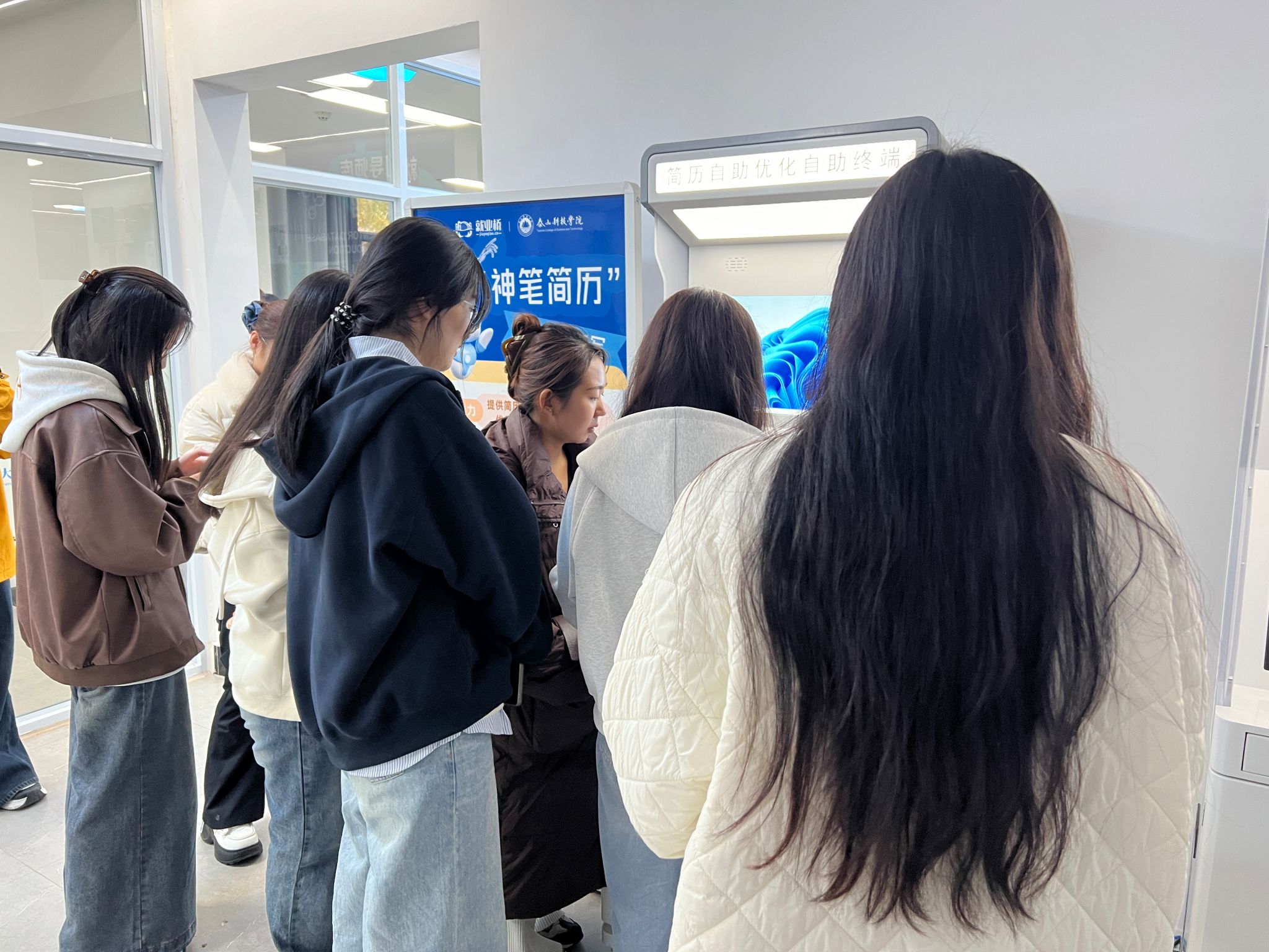 活动伊始,学生们便被几台外观简洁的“简历优化一体机”所吸引。在老师的指导下,同学们纷纷上前操作。只需将自己的简历初稿导入系统,机器便能迅速进行智能解析与评估。