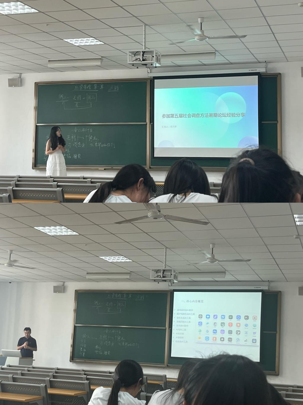 随后,暑期外出学习的老师进行了经验分享。企业管理教研室宋文梦老师在参加第五届社会调查方法暑期论坛经验分享中,指出好的研究需有合适问题、可靠证据和严密逻辑,阐述了何为好选题,并列举了编辑认定的好文章的标准,提醒规避差文章的常见问题。经济学教研室主任聂飞围绕通用语言、音视频生成、学术、写作等多类AI工具进行分享,解析其在教学、科研、资源创作中的应用,助力教师探索教育数字化,推动课堂创新与学校信息化发展。