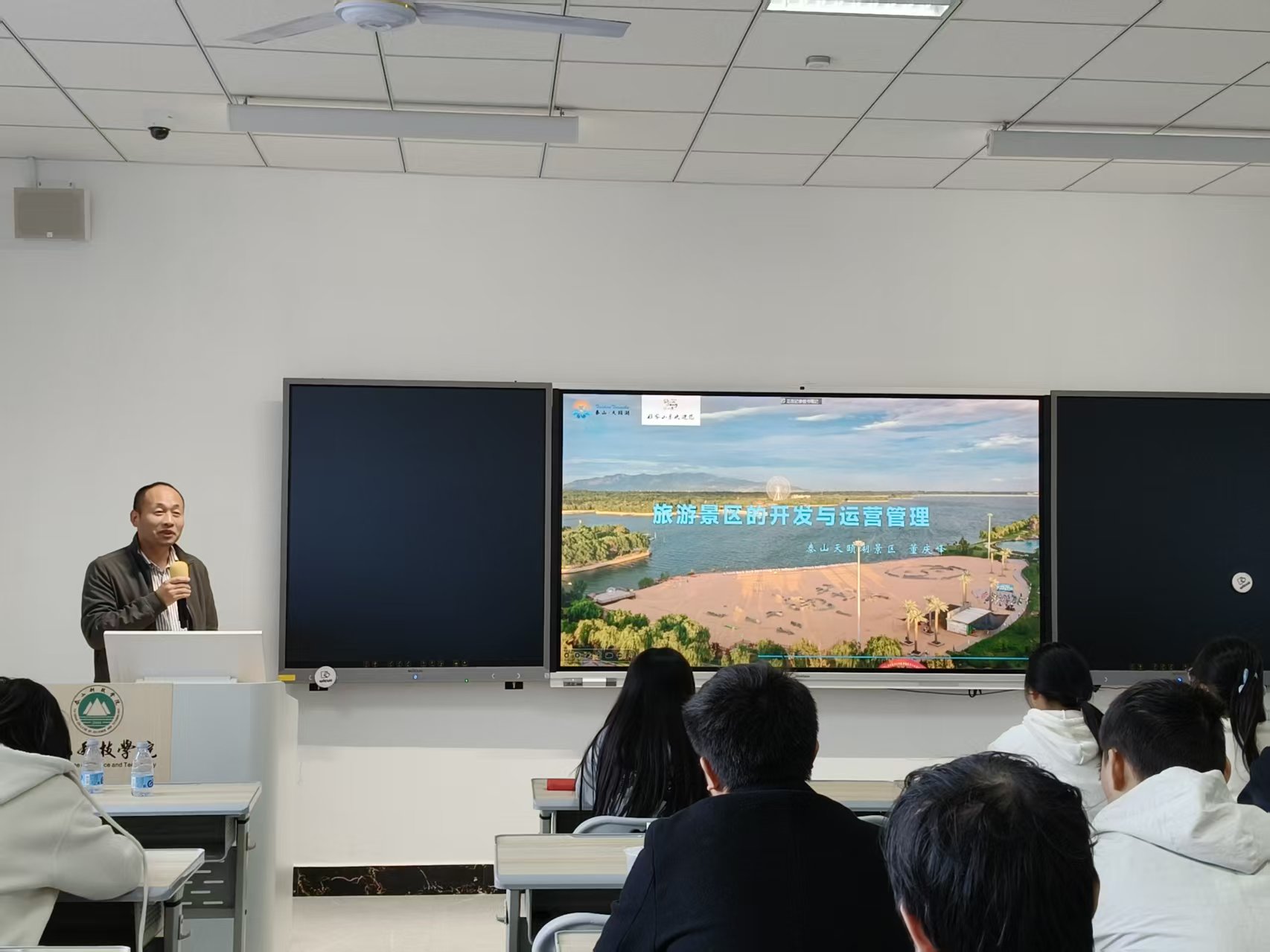 11月5日,泰山科技学院淬炼商学院“泰山商道”系列主题讲座特邀泰山天颐湖景区资深管理人、拥有十余年景区运营实战经验的行业专家董庆峰担任主讲嘉宾。本次分享会以“旅游现状洞察、景区开发核心逻辑、运营策略创新”三大主题为轴心,通过理论解析、案例剖析与趋势研判,为泰山科技学院师生呈现了一场兼具理论深度与实践价值的文旅盛宴,为推动文旅产业高质量发展提供了前沿思路与创新路径。