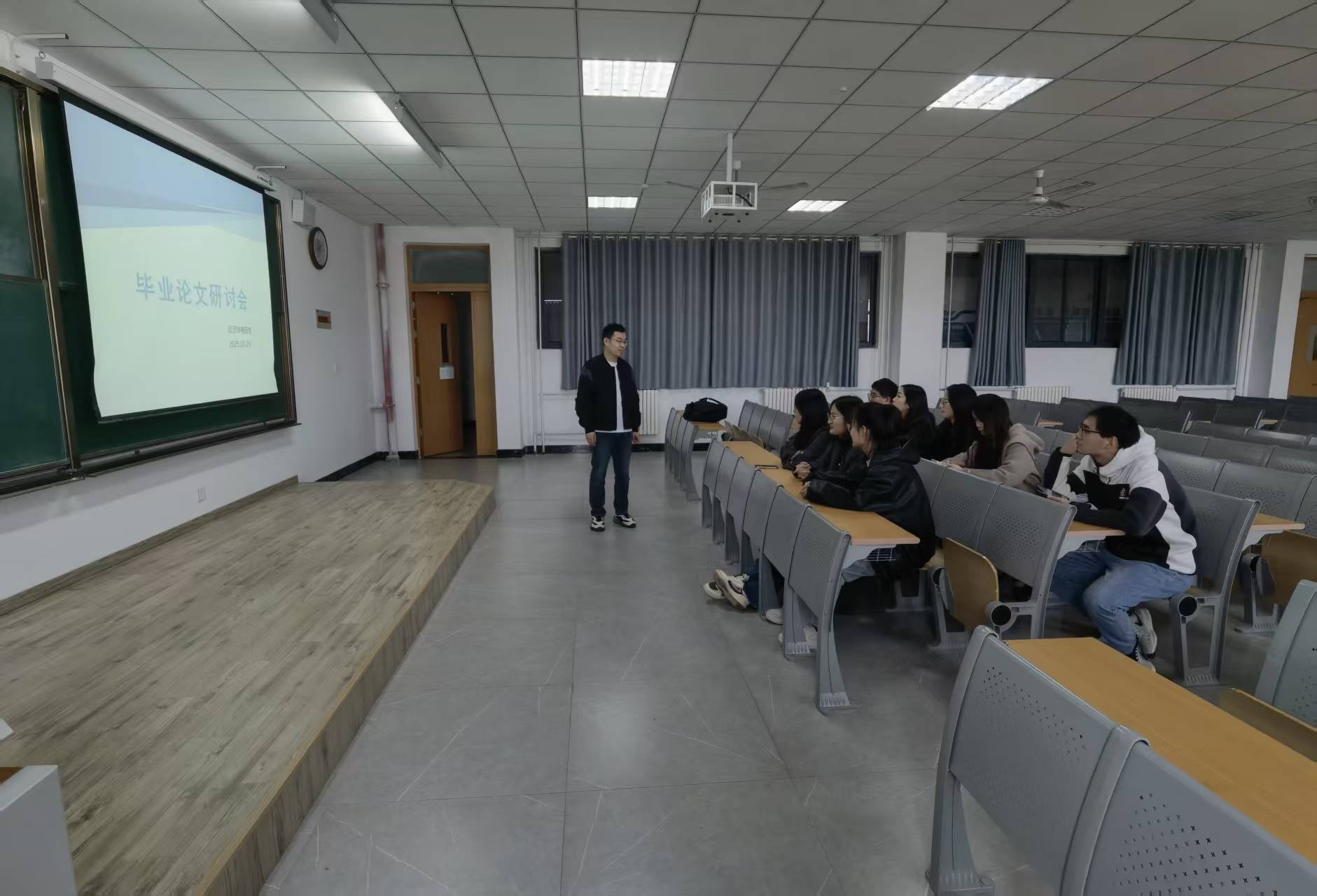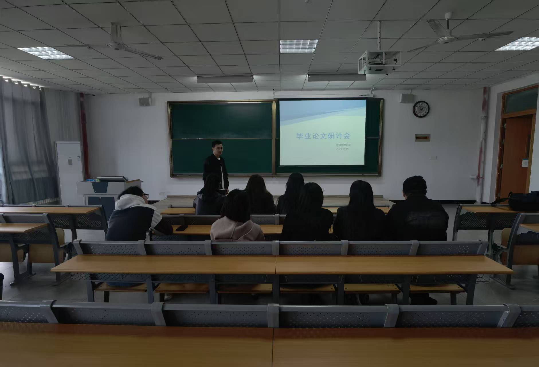 10月29日,淬炼商学院经济学教研室于J3-410教室成功召开毕业论文研讨会。本次会议由聂飞老师主持,围绕毕业生毕业论文的选题方向、研究框架、撰写规范及后续指导方案等核心议题展开深入探讨与交流,为提升本届毕业生毕业论文质量筑牢学术根基。