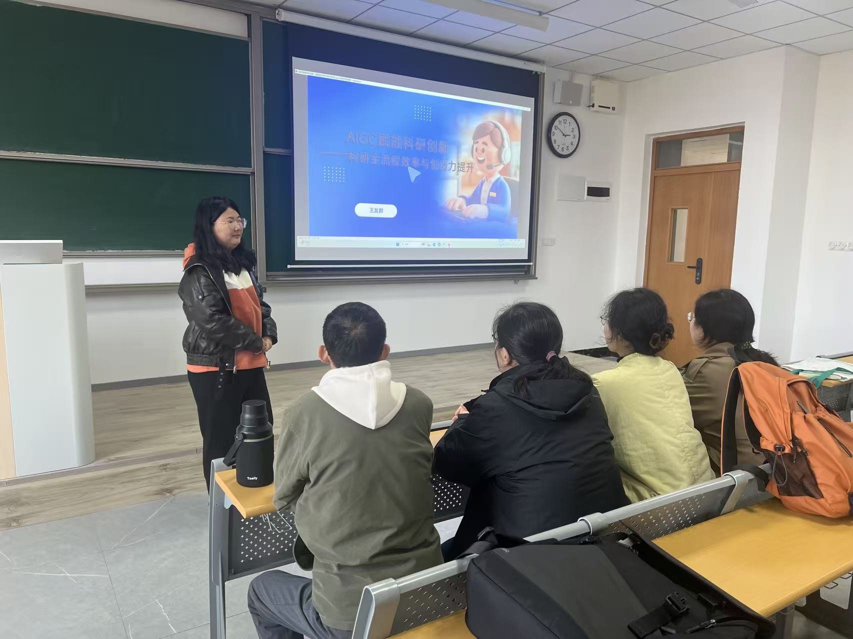 会议伊始,王发群以“科研实践中的痛点与破局”为切入点,精准剖析了当前科研工作中普遍存在的文献信息过载难筛选、创新思路局限易枯竭、学术写作转化效率低、时间精力分散难聚焦等核心问题,引发全体参会教师的强烈共鸣。随后,与会教师围绕“AIGC如何为科研赋能”展开热烈讨论,一致认为面对数字技术变革浪潮,应主动拥抱新技术、善用新工具,将AIGC转化为提升科研效能的“加速器”。教师刘悦提出,AIGC的应用可遵循“由浅入深、稳步推进”的原则,先从文献梳理、数据整理、格式规范等基础环节入手,逐步探索在选题构思、方案设计、成果优化等深度场景的应用;同时强调,技术应用需坚守学术规范底线,严格把控数据真实性、观点原创性,确保科研工作的科学性与严谨性。