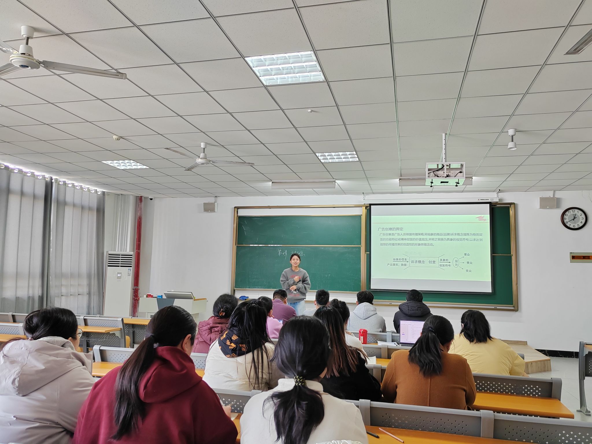 邢淑钧老师的讲解的《整合营销传播》中的“广告创意与诉求方法”课程则聚焦整合营销实践痛点。她精选国内外经典广告案例,从情感诉求、理性诉求、场景化诉求三大维度,解析创意生成的底层逻辑,通过“命题创意构思”现场实操环节,引导教师分组完成产品广告框架设计,并针对性点评优化,既展现了广告创意的趣味性,又传递了“创意落地需贴合品牌定位”的核心原则,课堂互动氛围热烈。