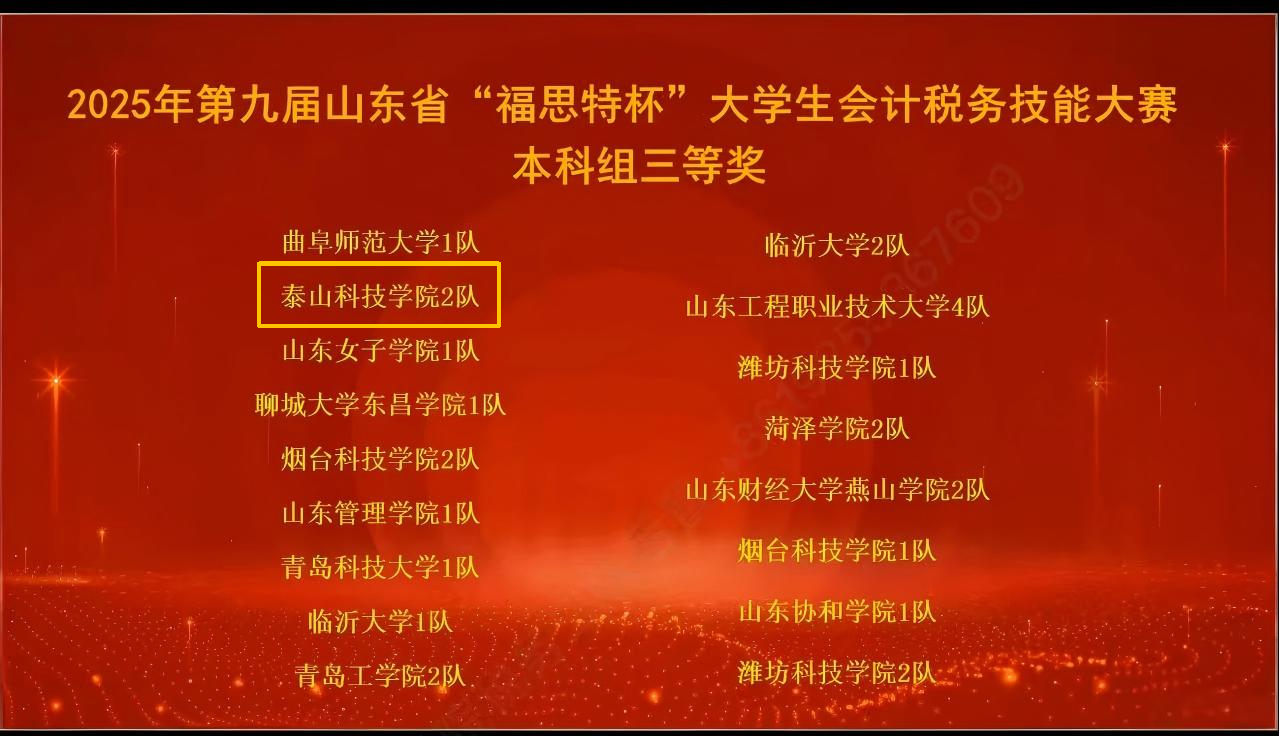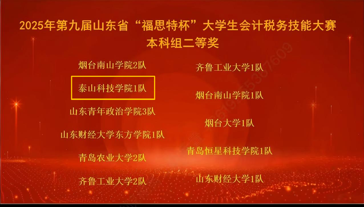 12月6日,由山东省教育厅高等教育处主办的山东省“福斯特杯”大学生会计税务技能大赛圆满落幕。我院刘文婧、李玉菡、李雪静三位老师带队参赛,两支参赛队伍不负众望,分别荣获山东省二等奖与三等奖,为学院赢得了荣誉。
