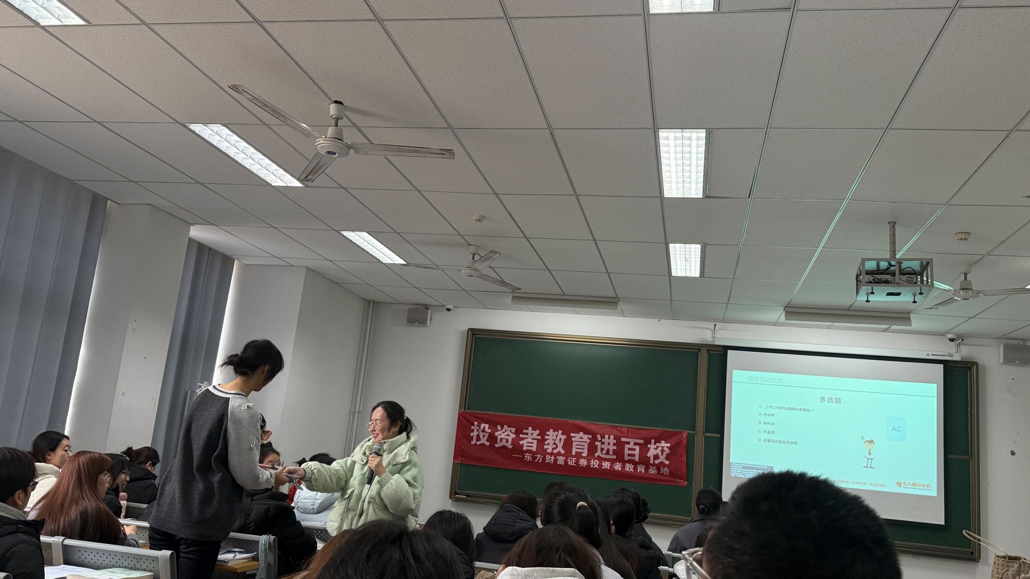 秦经理以鲜活的上市公司实际案例引导同学们如何从海量年报信息中快速抓取重点,如何识别财务数据的“水分”与预警信号,如何通过财务比率分析、趋势分析以及同行业对比,综合评价企业的盈利能力、偿债能力、运营效率与发展潜力。讲解过程中,秦经理不时与同学们互动,就大家在学习中遇到的关于财务报表的问题进行现场解答。她强调,“读懂年报不仅是技术活,更是一种商业思维训练,需要结合宏观经济、行业趋势与企业战略进行立体化解读。”