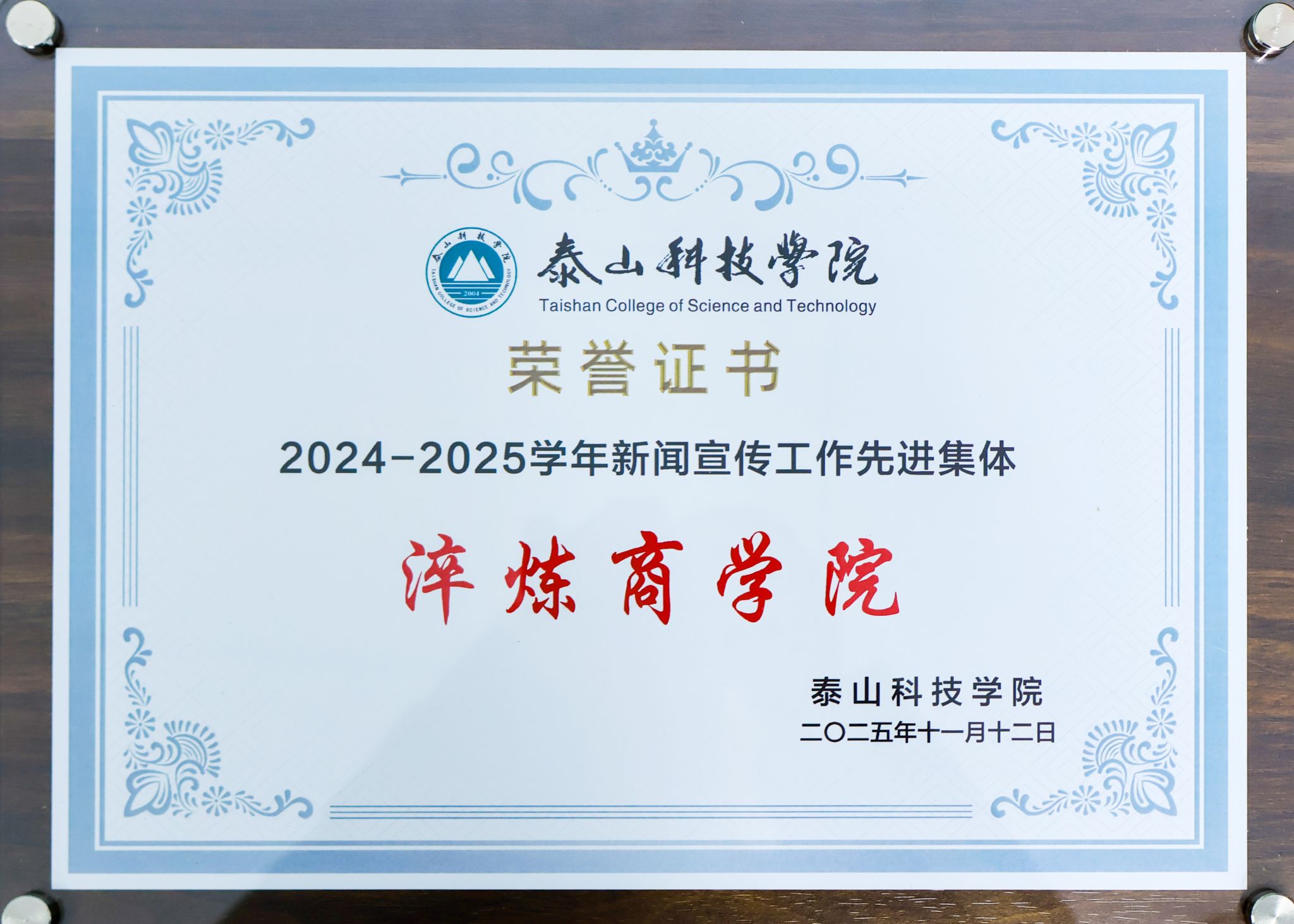 近日,学校正式下发《关于表彰泰山科技学院2025届毕业生就业创业工作先进集体和先进个人的决定》《关于表彰2024-2025学年新闻宣传工作先进集体和先进个人的决定》,淬炼商学院荣获泰山科技学院2025届毕业生就业创业工作贡献集体、2024-2025学年“新闻宣传工作先进集体”两项荣誉称号,彰显了学院在就业创业工作与品牌营销方面的卓越成效。