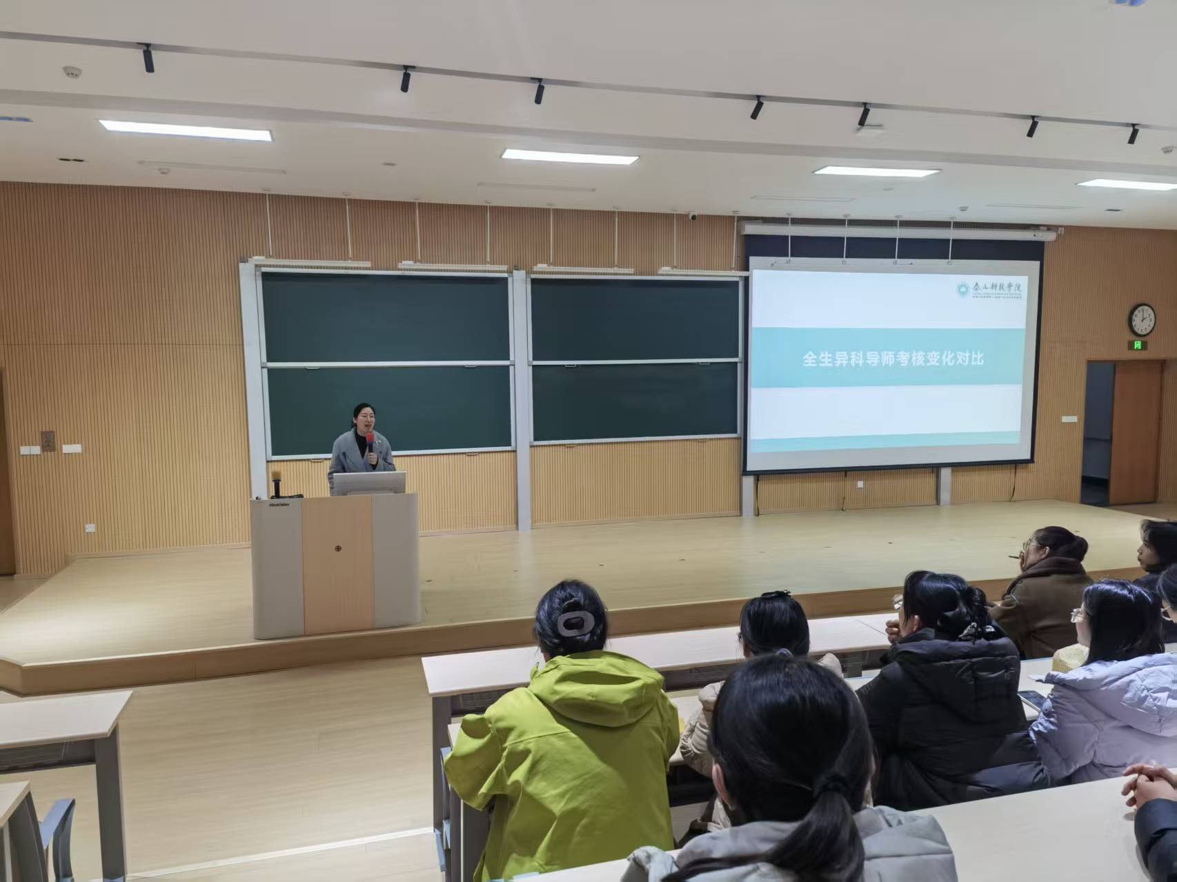 2025年12月19日,淬炼商学院在J2-320召开了淬炼商学院异科导师院长见面会,院长鹿敏出席会议并作主旨讲话,全面解读《泰山科技学院全生异科导师工作考核管理办法(2025年修订)》(以下简称《办法》)的核心变化,淬炼商学院全体全生异科导师、相关职能部门负责人参加会议。