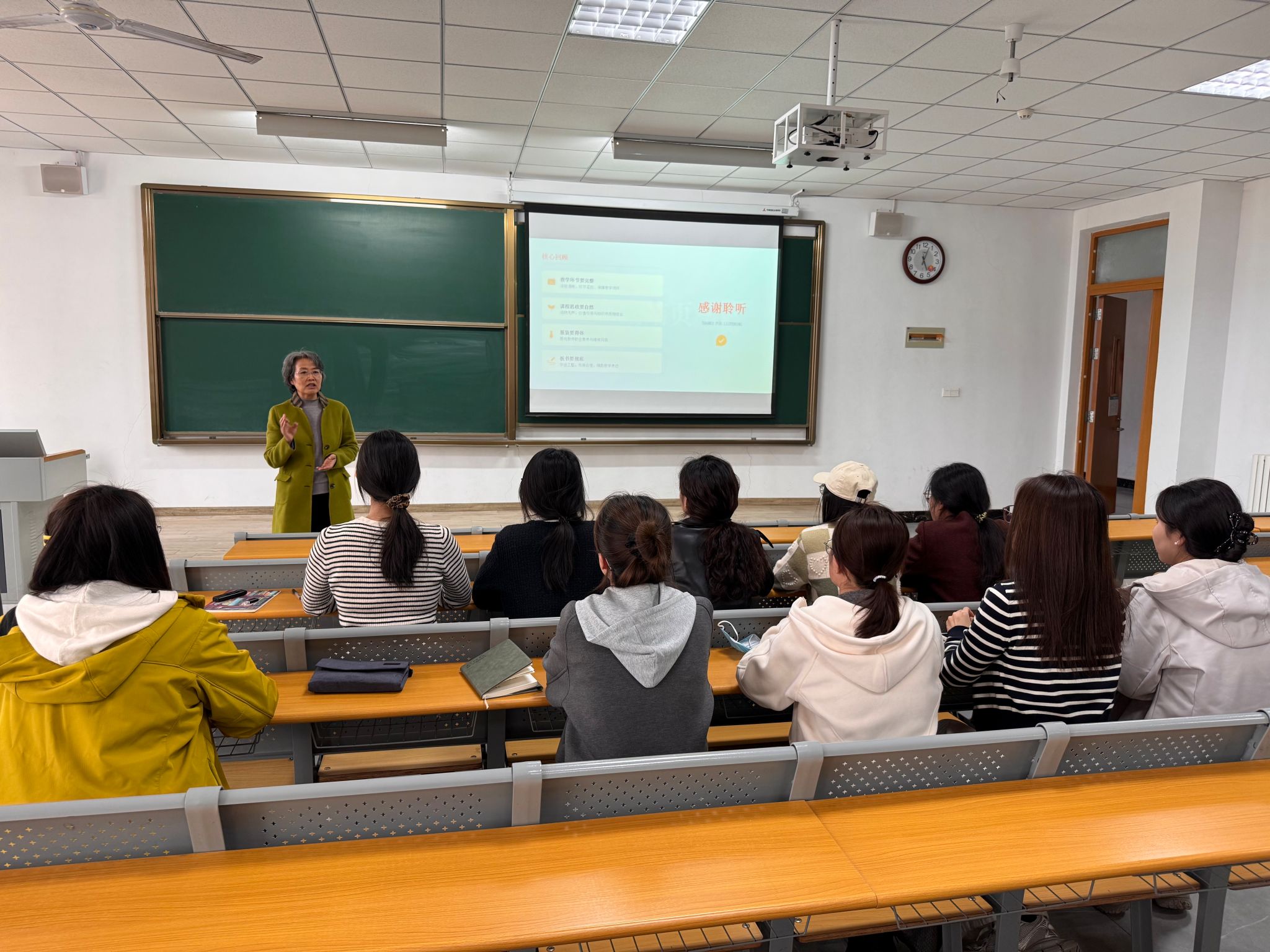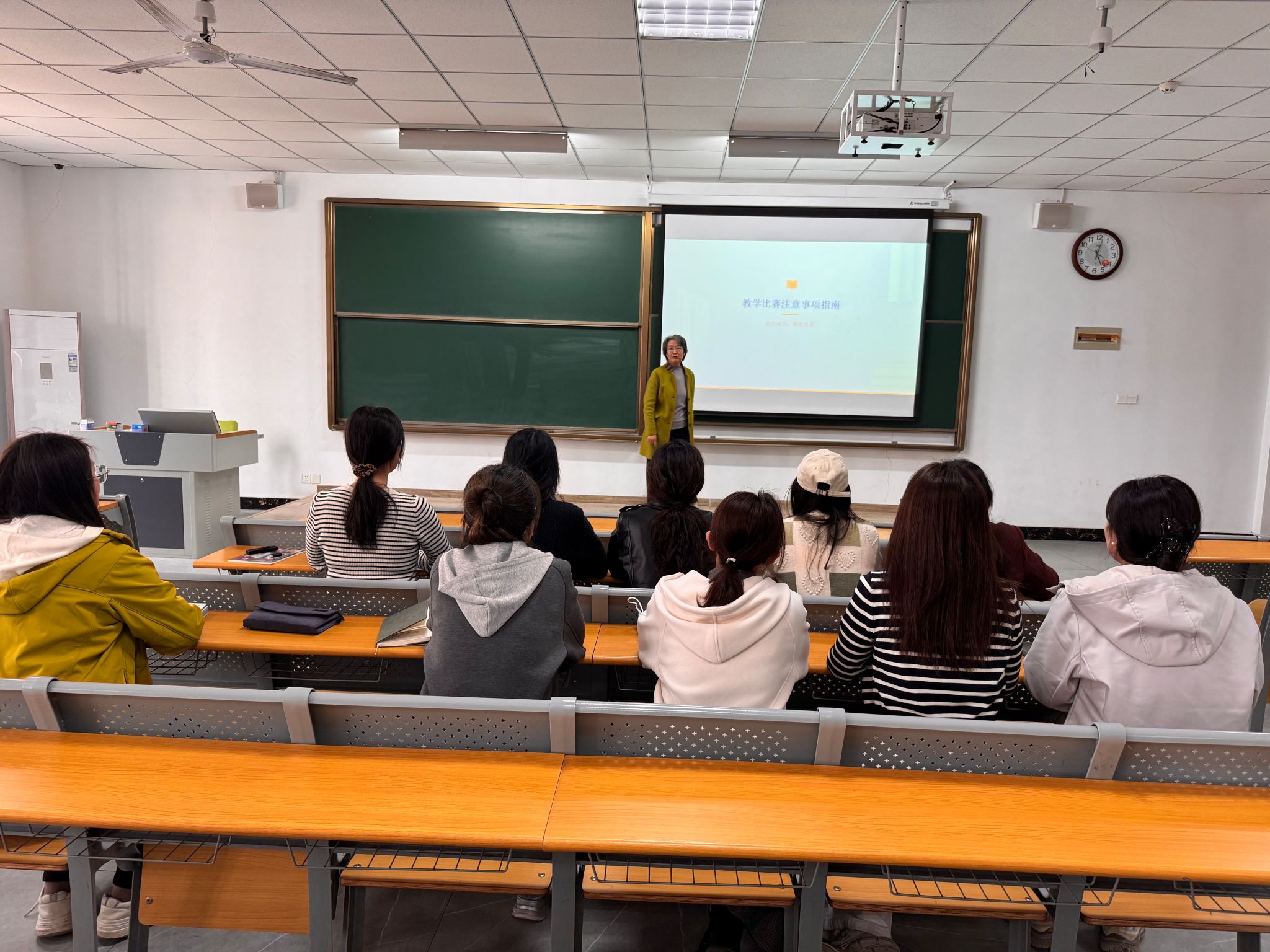 培训过程中,老师们认真聆听、积极交流,结合自身教学与备赛过程中遇到的问题展开探讨,张霞老师逐一进行细致解答与针对性指导,现场学习氛围浓厚。此次专题培训,紧扣青教赛备赛需求与教师教学能力提升核心,为老师们理清了教学思路、明确了改进方向,有效助力青年教师打磨教学技能、提升教学质量。