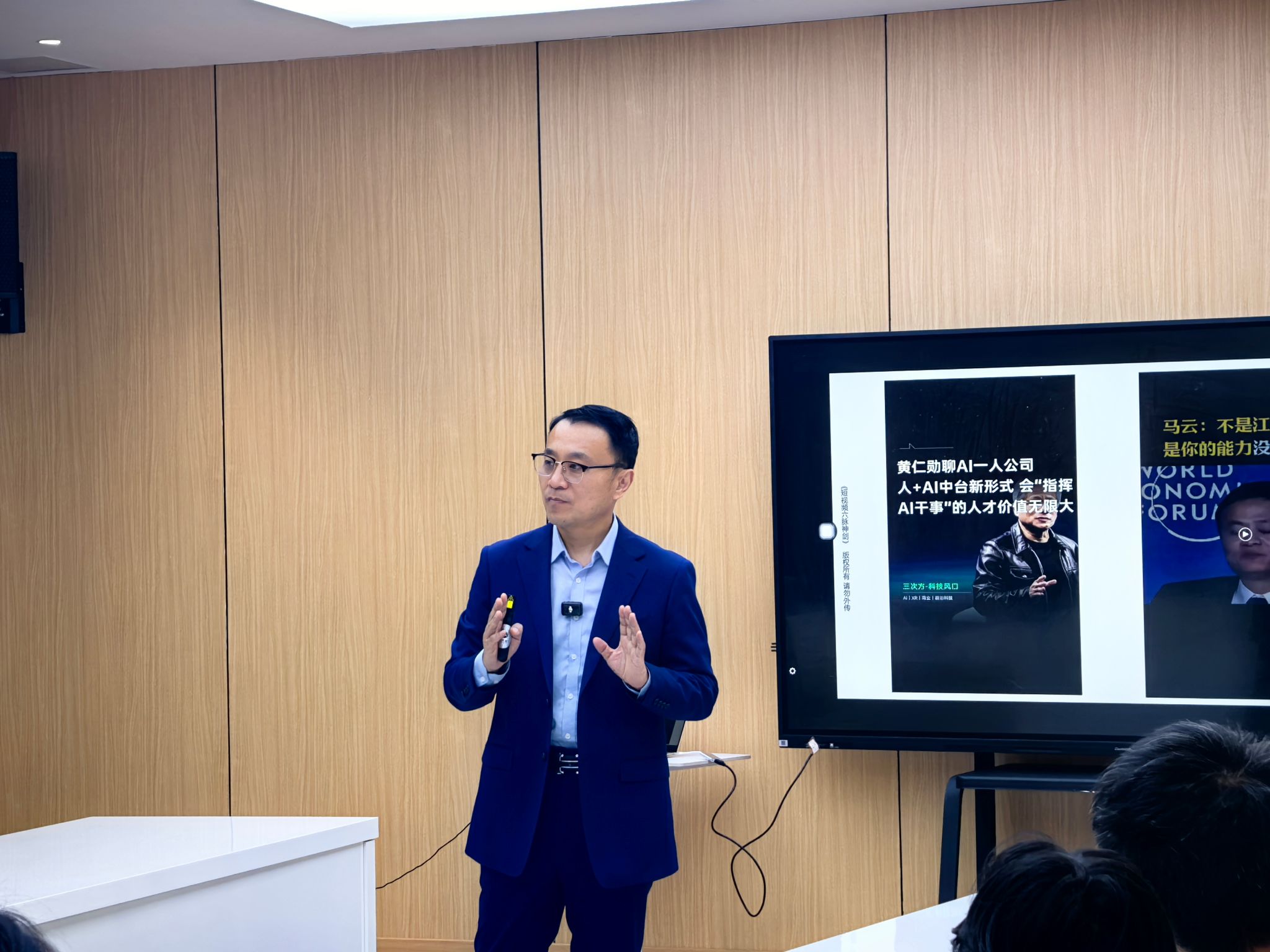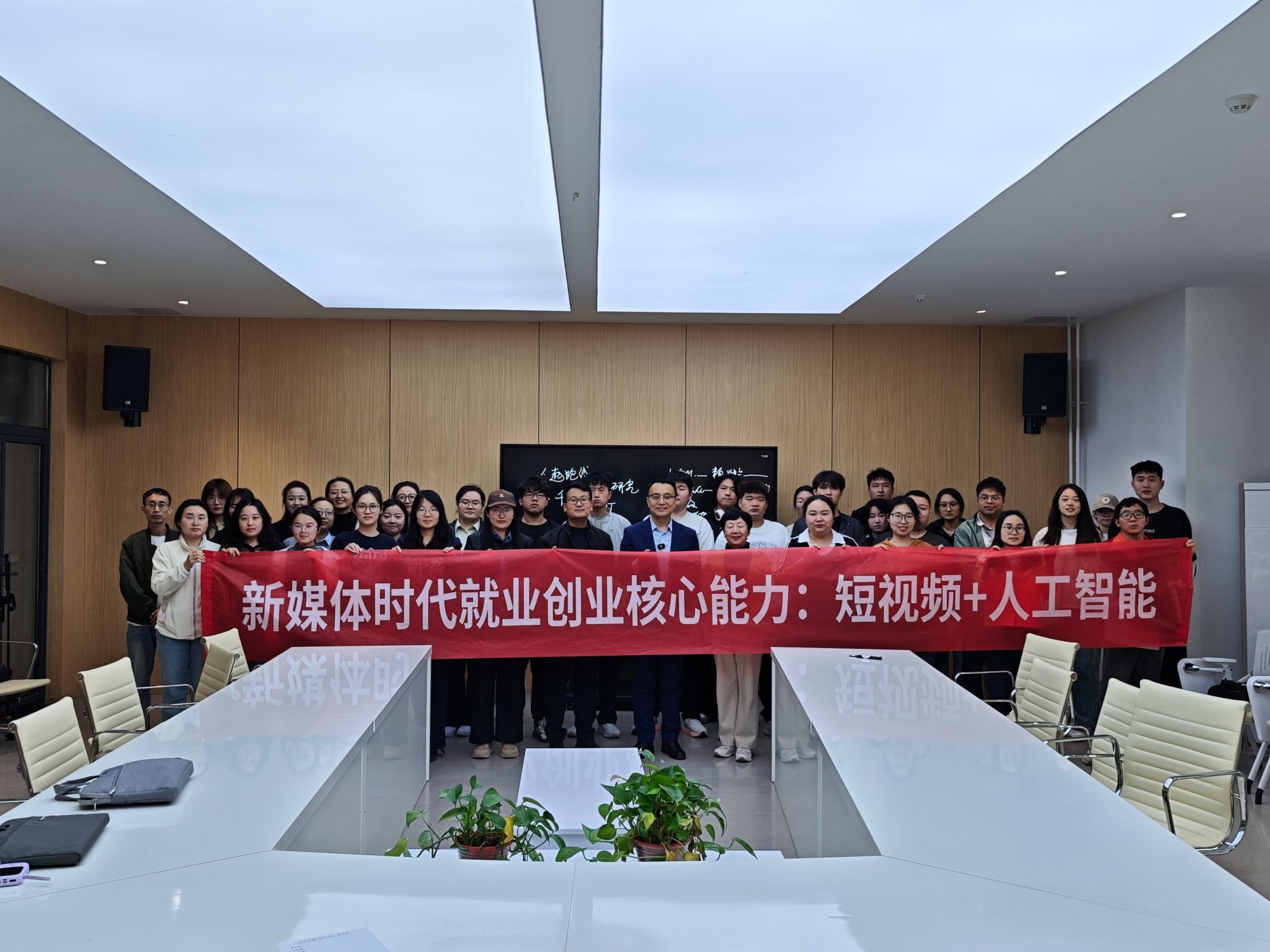 讲座伊始,李总以自身创业经历切入,回顾了从传统广告策划到抓住移动互联网风口,深耕微信营销,再到布局人工智能与短视频领域的发展历程。2012年,他凭借一条朋友圈实现30余万销售额的经历,让现场师生直观感受到新媒体营销的巨大潜力;而从三线城市的广告策划人,到走进北京大学,为一汽解放、福田集团等知名企业高管授课的行业导师,其成长轨迹也印证了把握时代红利对个人发展的重要性。李总直言,当前就业市场竞争日趋激烈,人工智能的普及让企业用人需求发生深刻变化,但挑战背后更是机遇,短视频与人工智能的结合,让所有学习者站在同一起跑线,成为年轻人突破竞争、实现职业跃升的重要抓手。