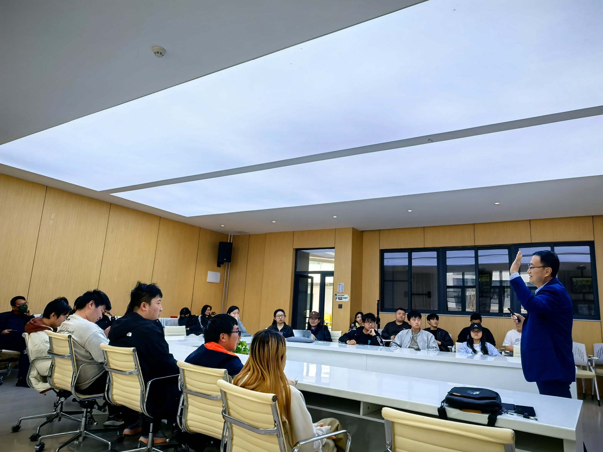 在讲座核心环节,李总围绕人工智能工具应用、短视频创作技巧、复合型人才培养等关键内容展开详细讲解,倾囊相授诸多可直接落地的实战方法。他向师生们推荐了千问、元宝、豆包等实用人工智能工具,逐一拆解其核心功能:千问的深度研究功能可实现职业规划分析、课件设计、PPT生成等一站式服务,能为学习和工作提供精准指导;元宝的语音记录、逐字稿提取、知识库搭建功能,可大幅提升学习效率与工作复盘质量,其分组功能更能实现不同场景的高效管理;豆包则可通过多版本内容生成、演讲模拟优化,助力内容创作与表达能力提升。李总强调,人工智能并非单纯的“偷懒工具”,而是提升效率的“智能秘书”,合理运用这些工具,能让个人工作效率提升数倍甚至数十倍,将更多时间投入到创新与深度思考中。
