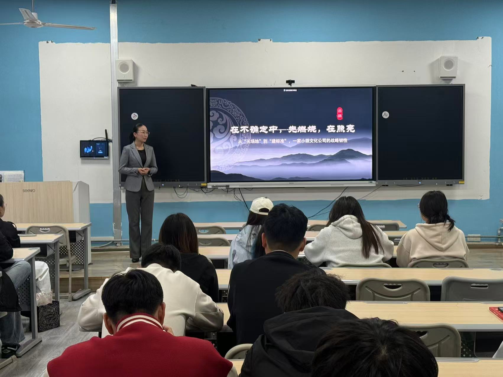 司诗清深入浅出讲解小微企业如何在资源有限条件下,通过敏捷调整、线上渠道布局、私域运营、成本管控、产品创新等方式提升抗风险能力,传授实战化战略分析工具与决策方法,引导同学们跳出理论框架,从持续经营、风险防控、数字化升级角度理解企业战略。她强调,互联网时代战略管理重在动态适配与韧性成长,小微企业更要以稳应变、以新提质,鼓励同学们立足专业、贴近实务、强化应用,树立面向实体经济的实战战略思维。