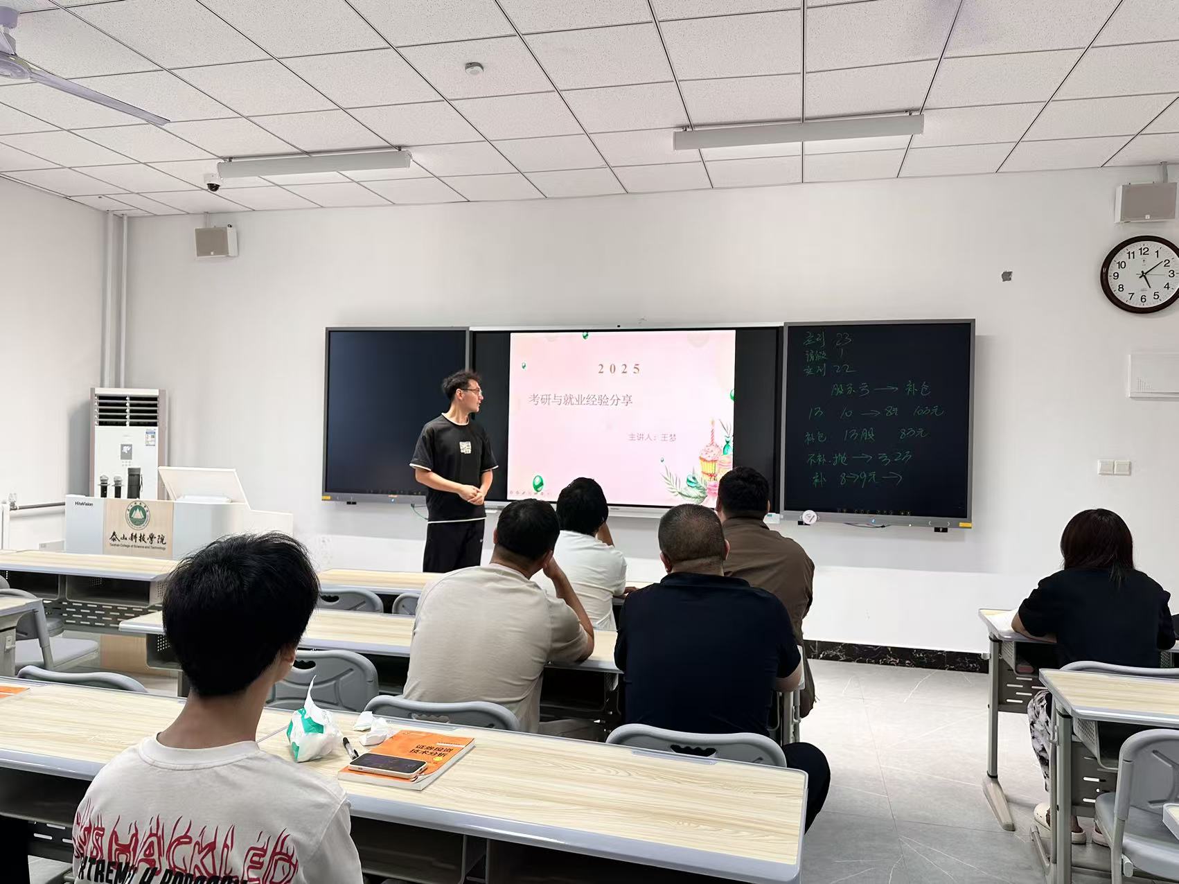 在就业分享环节,王梦老师从就业市场现状、行业发展趋势入手,为同学们分析了当前就业形势。接着,结合实际案例,分享了简历撰写、网申技巧、笔试准备及面试应对等实战经验,还就不同岗位的能力需求与同学们进行了深入交流。同时,从求职心态调整、职业规划与个人能力匹配等角度出发,为同学们提供了个性化的指导。