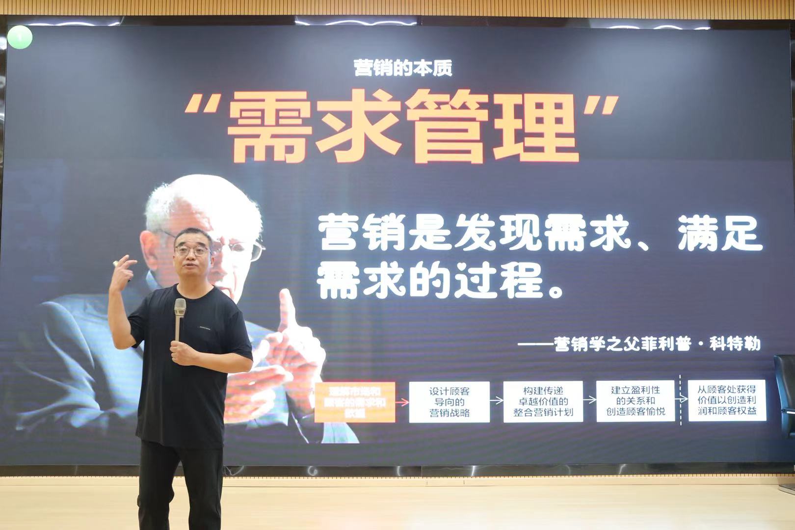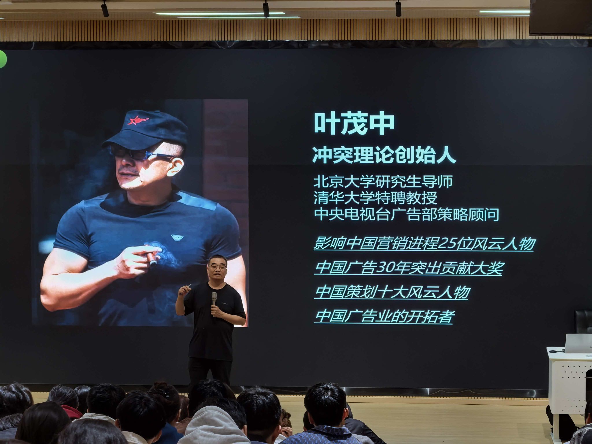 作为活动核心环节,讲座特邀叶茂中冲突营销成都分院院长何景平老师主讲。何老师深耕营销领域十余年,拥有丰富的理论研究与实战经验。讲座中,他以“冲突营销的本土实践与价值” 为核心,系统讲解冲突营销理论的起源、核心要义及应用逻辑,通过对比国内外营销理论发展脉络,突出叶茂中先生在探索中国本土营销路径中的开创性贡献 —— 从 “冲突解决” 视角重构营销思维,打破传统营销模式局限,为本土品牌发展提供精准策略支撑,让在场学生深刻理解该理论的时代价值。