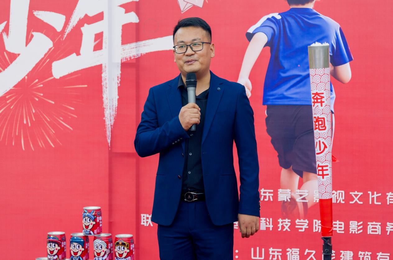 项目主管贾学东首先发表致辞,对《奔跑少年》剧组的到来表示热烈欢迎。他讲到:“能与专业的剧组团队携手,让黄河文化的磅礴力量与体育精神的青春活力在我们校园落地生根,我们深感荣幸。” 同时,他也向剧组送上诚挚祝福,祝愿《奔跑少年》开机大吉,拍摄顺利。