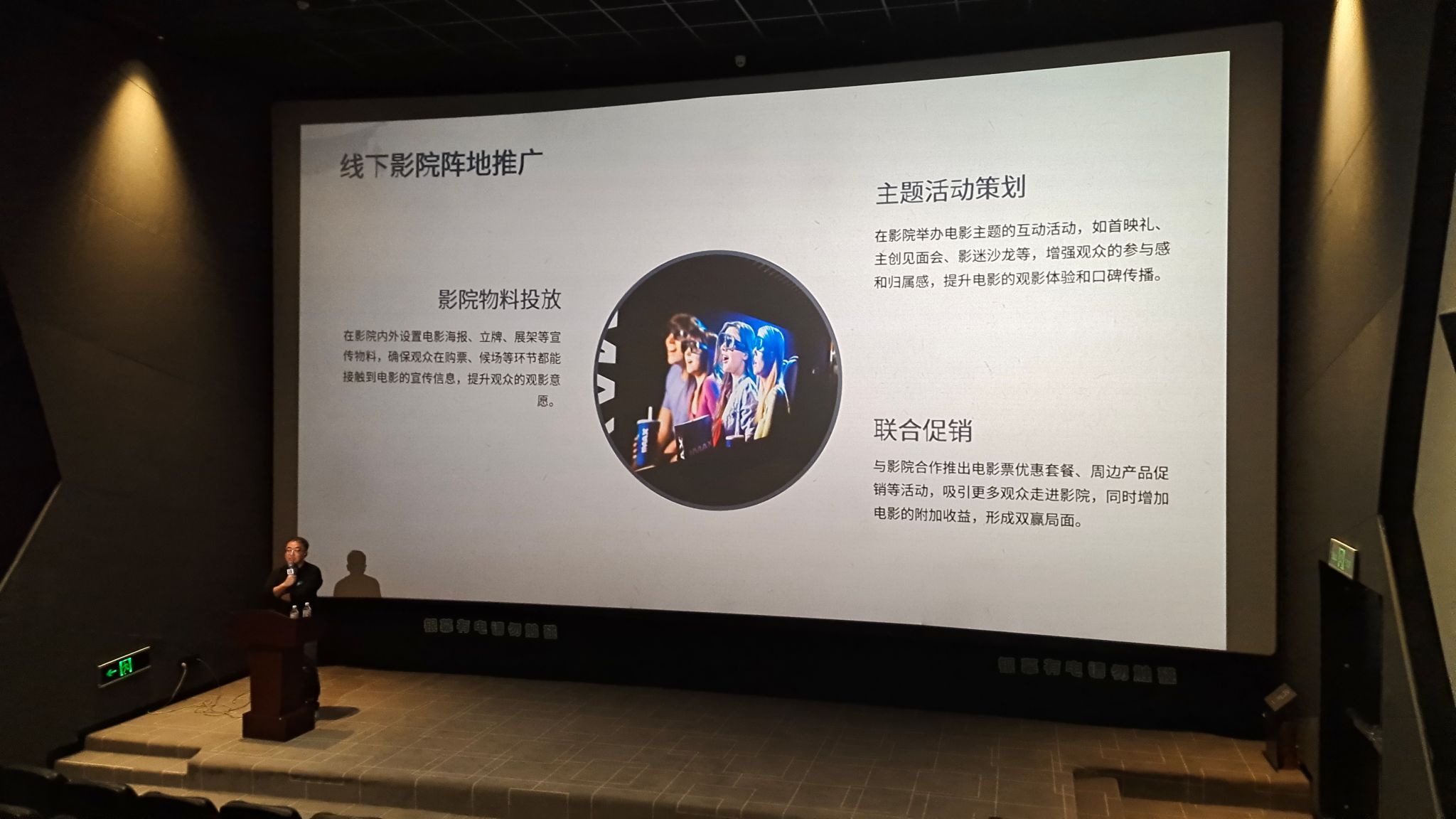 高川导师深耕电影宣发领域多年,凭借对行业生态的深刻洞察,从三个维度系统解析了线下影院阵地推广的战略布局与执行逻辑。在影院物料投放环节,他强调需通过“矩阵式宣传物料布局”,在影院全场景构建电影信息触达网络,从入口海报的视觉冲击到候场区域的展架渗透,实现观众观影决策全链路的心智占领,为影片票房转化筑牢基础;谈及主题活动策划,他提出要以 “沉浸式体验场景营造” 为核心,通过首映礼的仪式感打造、主创见面会的情感链接、影迷沙龙的深度交互,将观众从 “观影消费者” 转化为 “品牌传播者”,借助圈层效应实现口碑的裂变式扩散;在联合促销板块,他创新性提出 “商业生态协同增益” 理念,主张以电影票为核心触点,联动影院推出票务优惠套餐、衍生周边促销等组合拳,既激活影院客流增长,又为影片开辟多元收益路径,达成产业生态的共生共赢。
