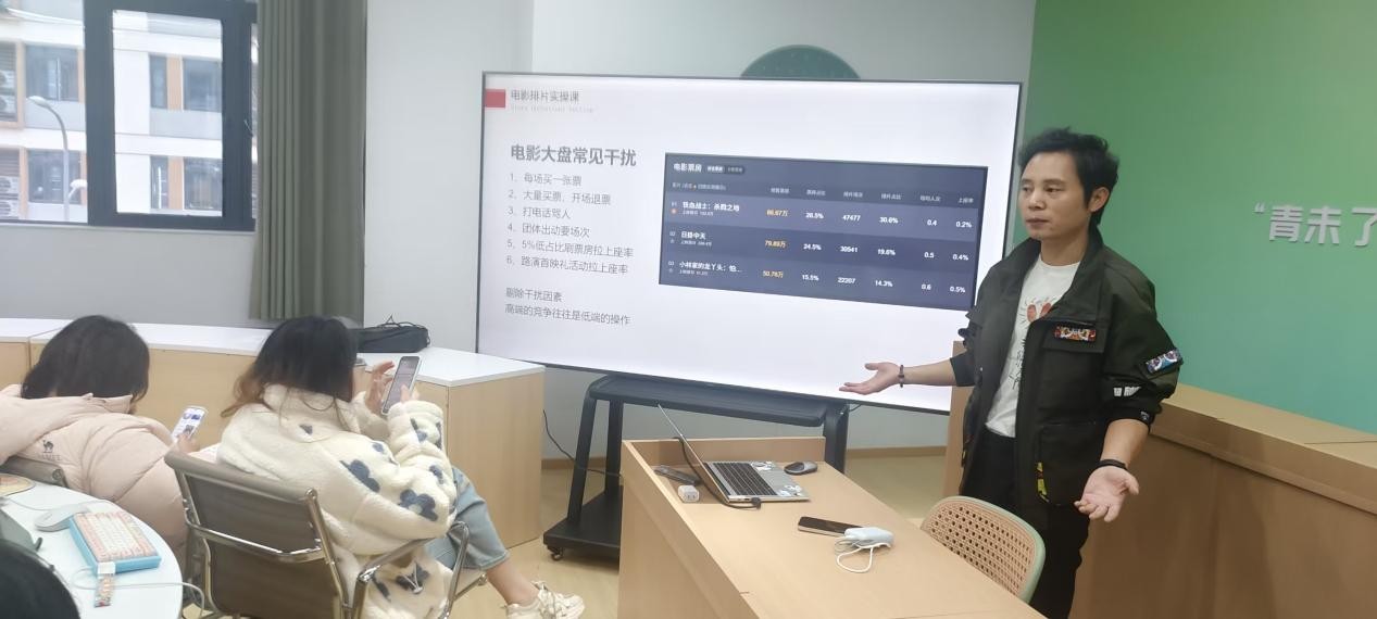 11月8日为打通影视排片理论与产业实操的壁垒,助力行业培育兼具商务思维与实战能力的排片管理人才。企业导师杨磊在敢当书院202开展了开展了优质小班电影排片实操课。本次课程依托产业学院深耕电影商务领域的资源优势,以“解决行业痛点、贴合产业需求”为核心,为影视从业者、相关专业学生及排片爱好者提供系统化实战指导。