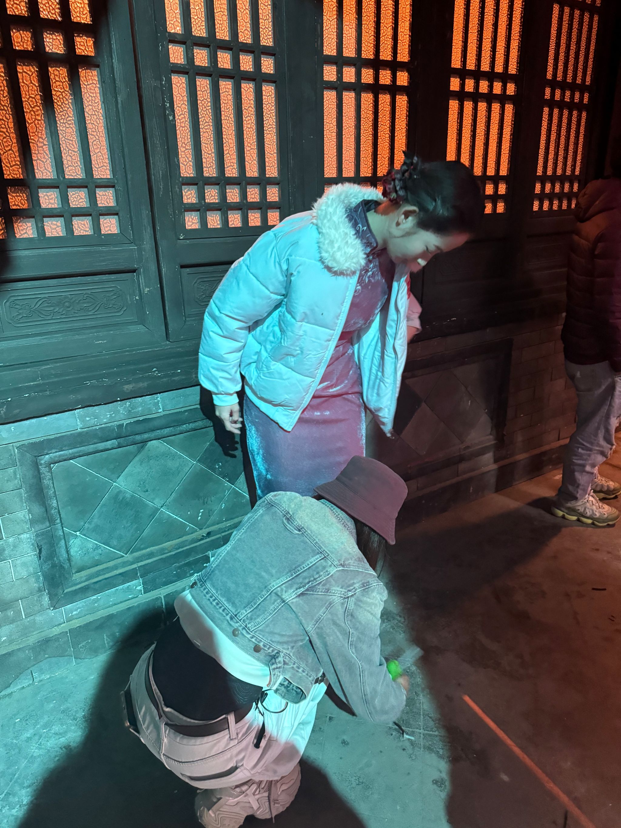 而杨召茹的“实战”来得更直接——开机后不久,她便换上了民国时期的服装,作为演员迅速融入到了第一个场景的拍摄中。“导演一喊‘开始’,整个现场就‘活’了过来。我需要跟着片场节奏迅速做出反应,虽然只有几秒钟的镜头,但那种身临其境、成为故事一部分的感觉特别真实!”尽管初来乍到,但她在执行演员走位和情绪反应时格外认真,很快就抓住了现场节奏。