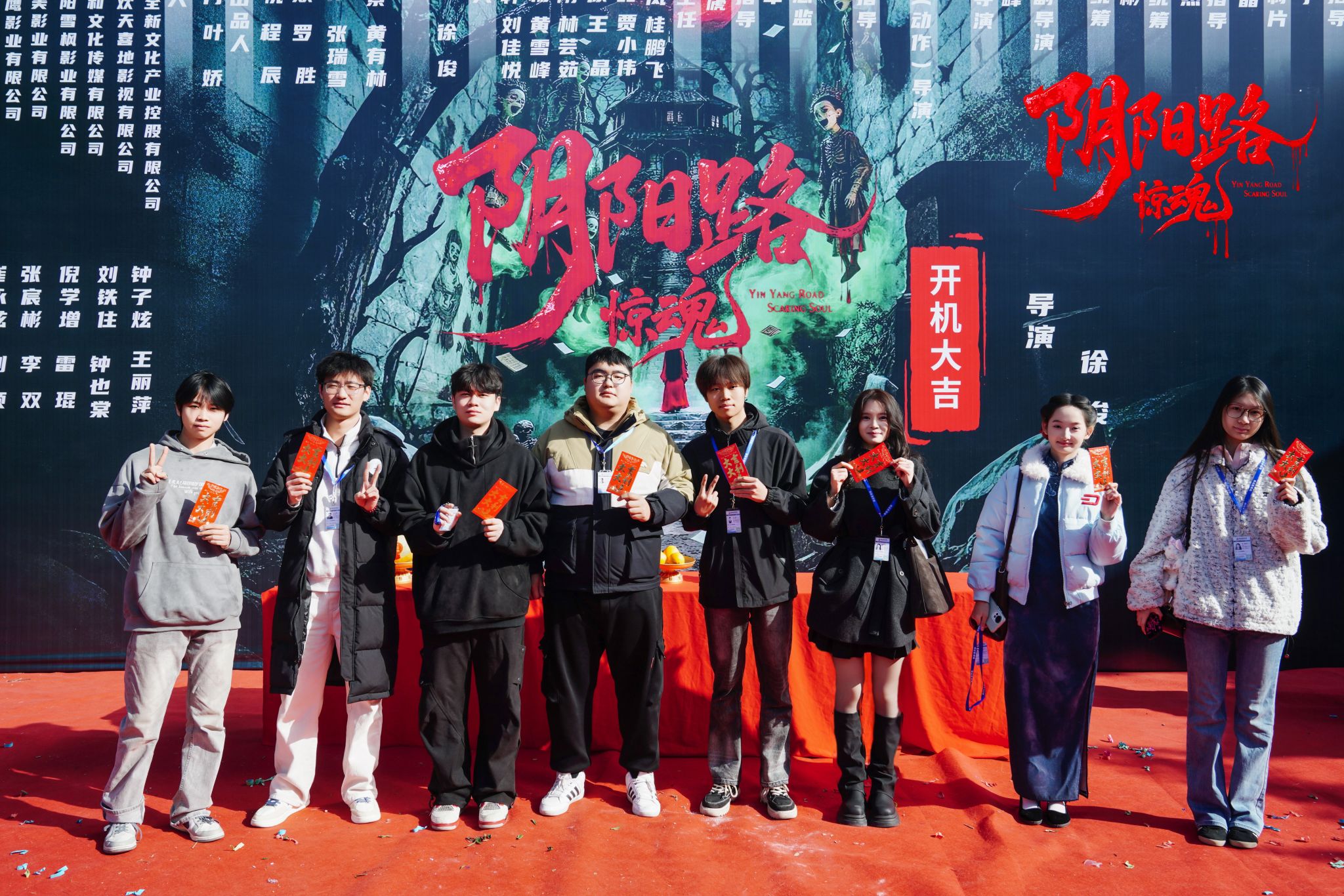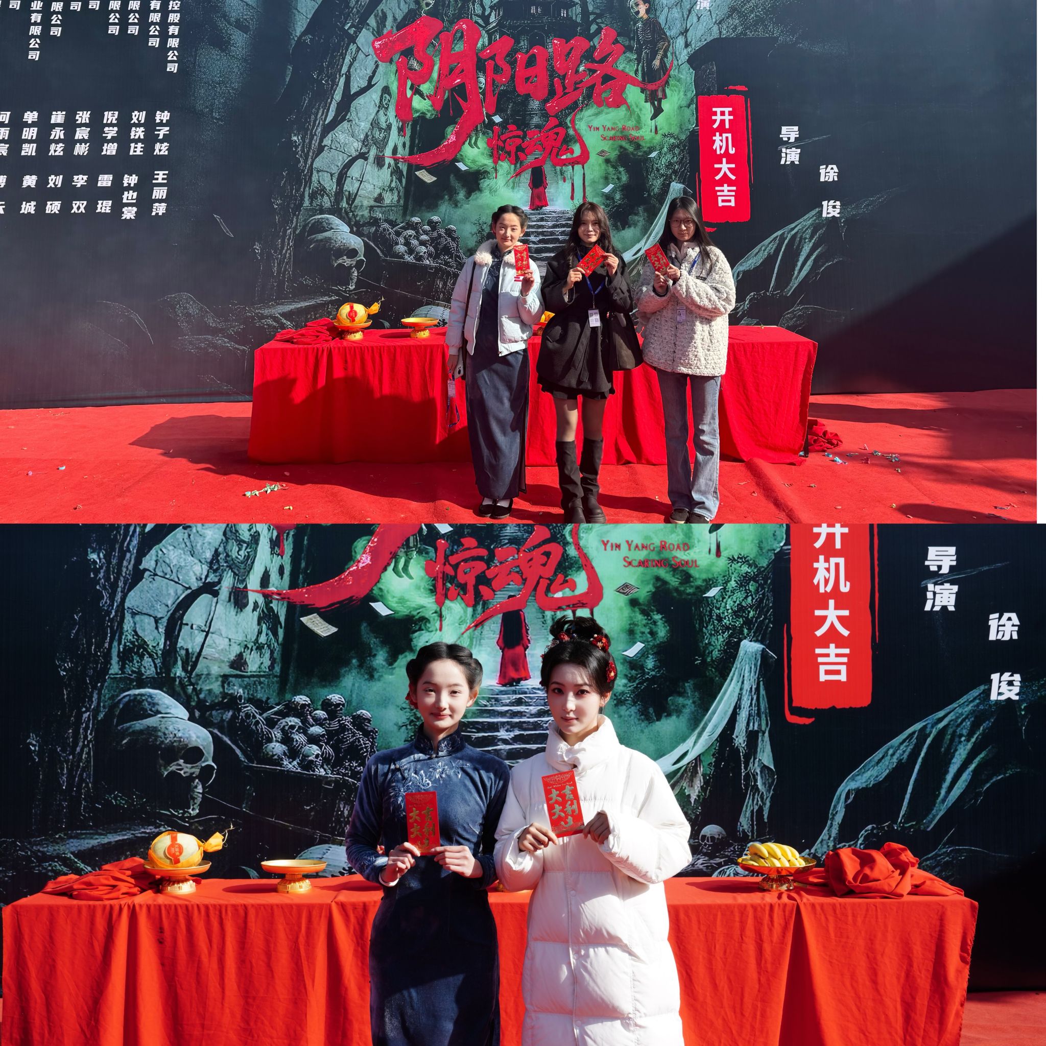 课堂与片场之间,究竟隔着多远?对于泰山科技学院的两位学子来说,这个距离就是一张前往横店的车票。近日,随着电影商务产业学院与万画影业合作的“带你拍电影”项目火热启动,经过层层选拔,学院第四期实训班学员杨召茹与来自音乐剧产业学院二期的优秀学员郭晓文青,成功解锁了一段真实的片场人生,深度参与了惊悚悬疑电影《阴阳路惊魂》的拍摄。导演徐俊执导、何雨宸主演的这部作品,已定档2026年上映,而两位同学的电影故事,则从这个冬天,提前上演。