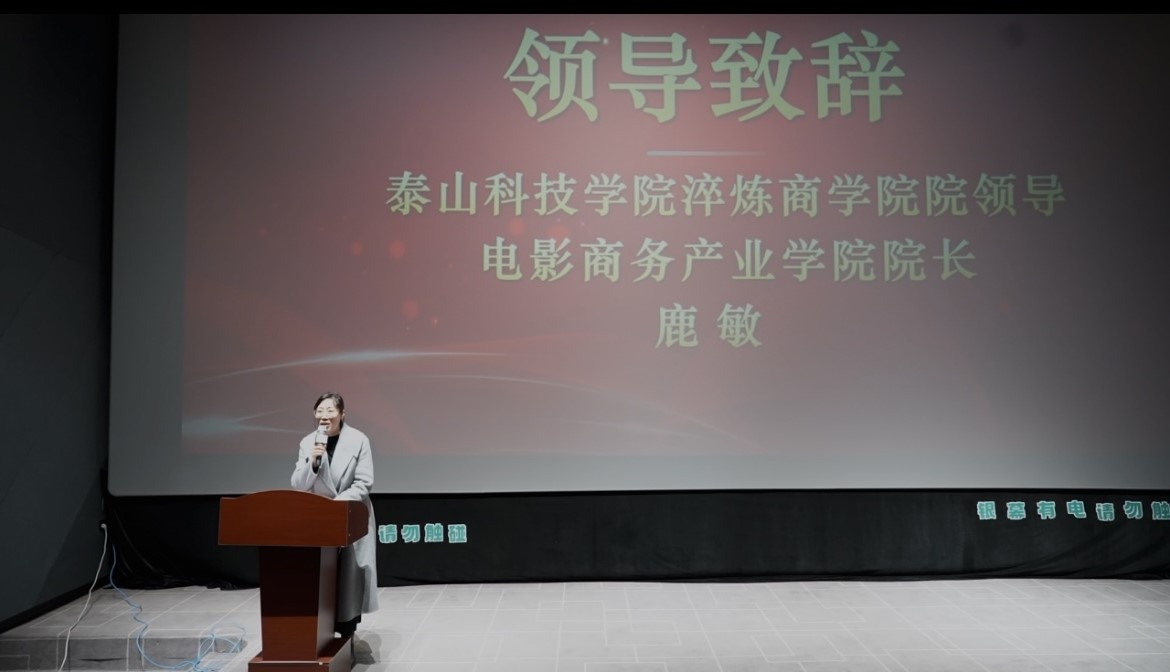 电影商务产业学院第四期实训班结业典礼在万画影城4号厅隆重举行。泰山科技学院淬炼商学院院领导、电影商务产业学院院长鹿敏,泰安万画影城经理杨磊,电影商务产业学院项目主管贾学东,学院教师杜振亚,项目导师王玉琨、孙继凯、徐竟哲等嘉宾应邀出席,与第四期全体学员共同见证这一学业成果的重要时刻。