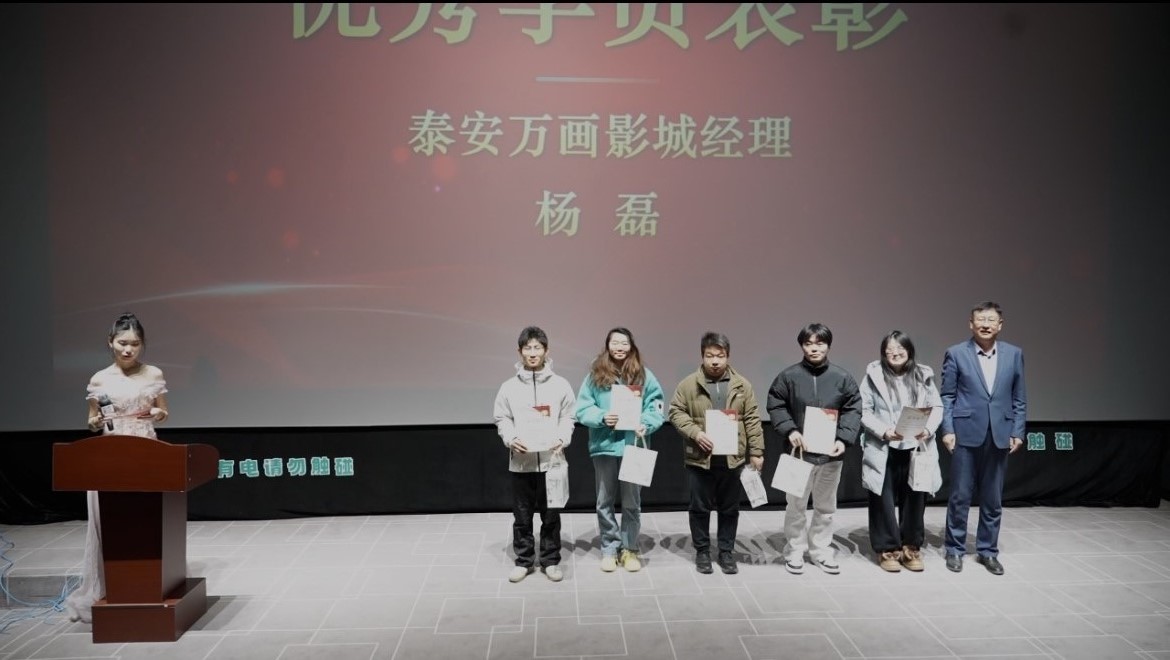 在颁奖环节中,学院为周文成、高惠泽等学员颁发结业证书,并授予邓诗韵、高诗涵、谢文祥、梁博超、唐初阳等学员“优秀学员”称号。泰安万画影城经理杨磊及学院项目导师王玉琨、孙继凯、徐竟哲分别为获奖学员颁奖,肯定他们在实训期间展现出的专业素养与综合能力。