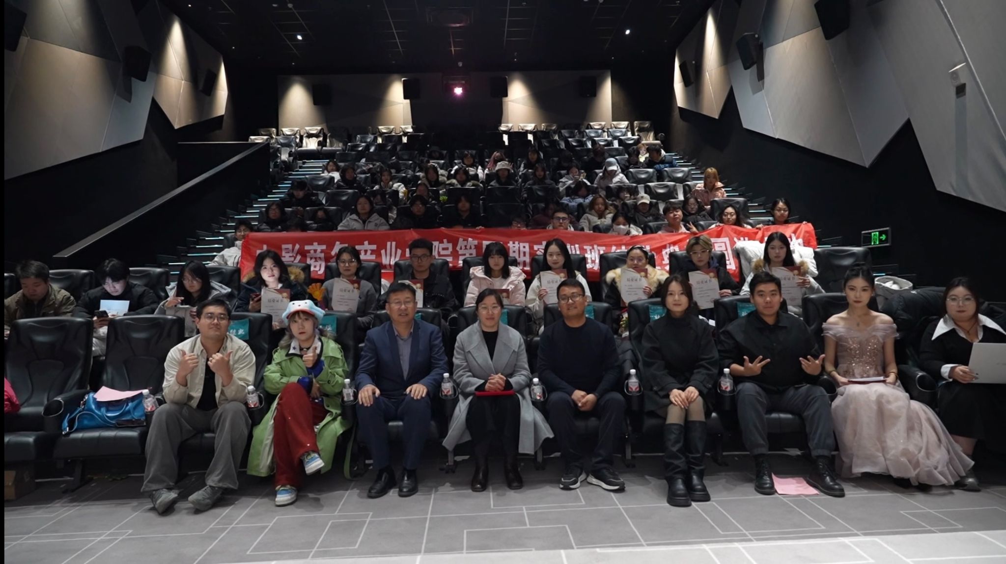 典礼在隆重而温馨的氛围中圆满结束。活动结束后,全体领导、嘉宾、教师与学员合影留念,为第四期实训班画上圆满句号。本期实训班的顺利结业,再次彰显了学院在影视商务人才培养方面的扎实成效与平台优势。未来,学院将继续深化课程建设与校企协同,助力更多学子在中国电影产业发展的浪潮中乘风破浪、绽放光彩。