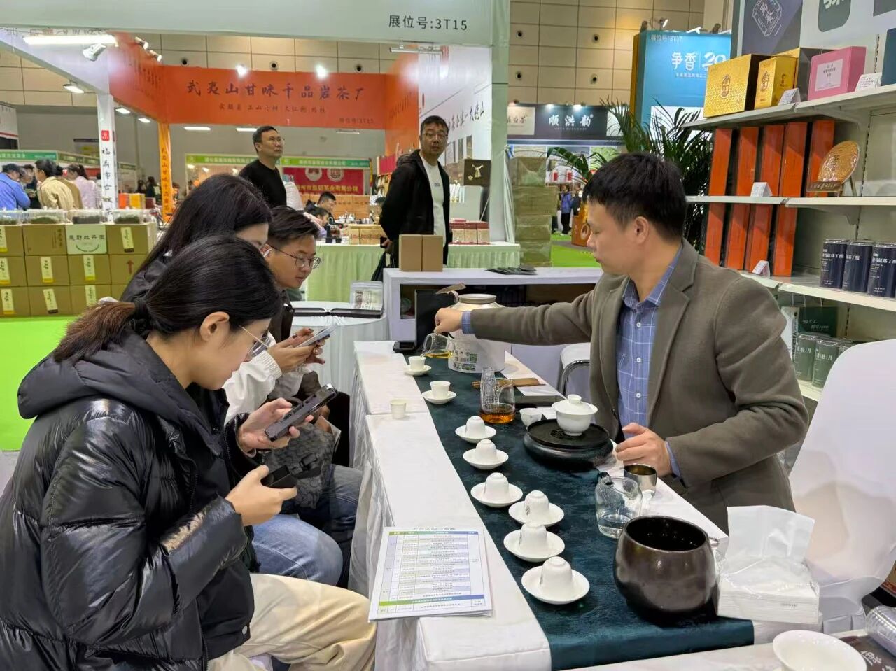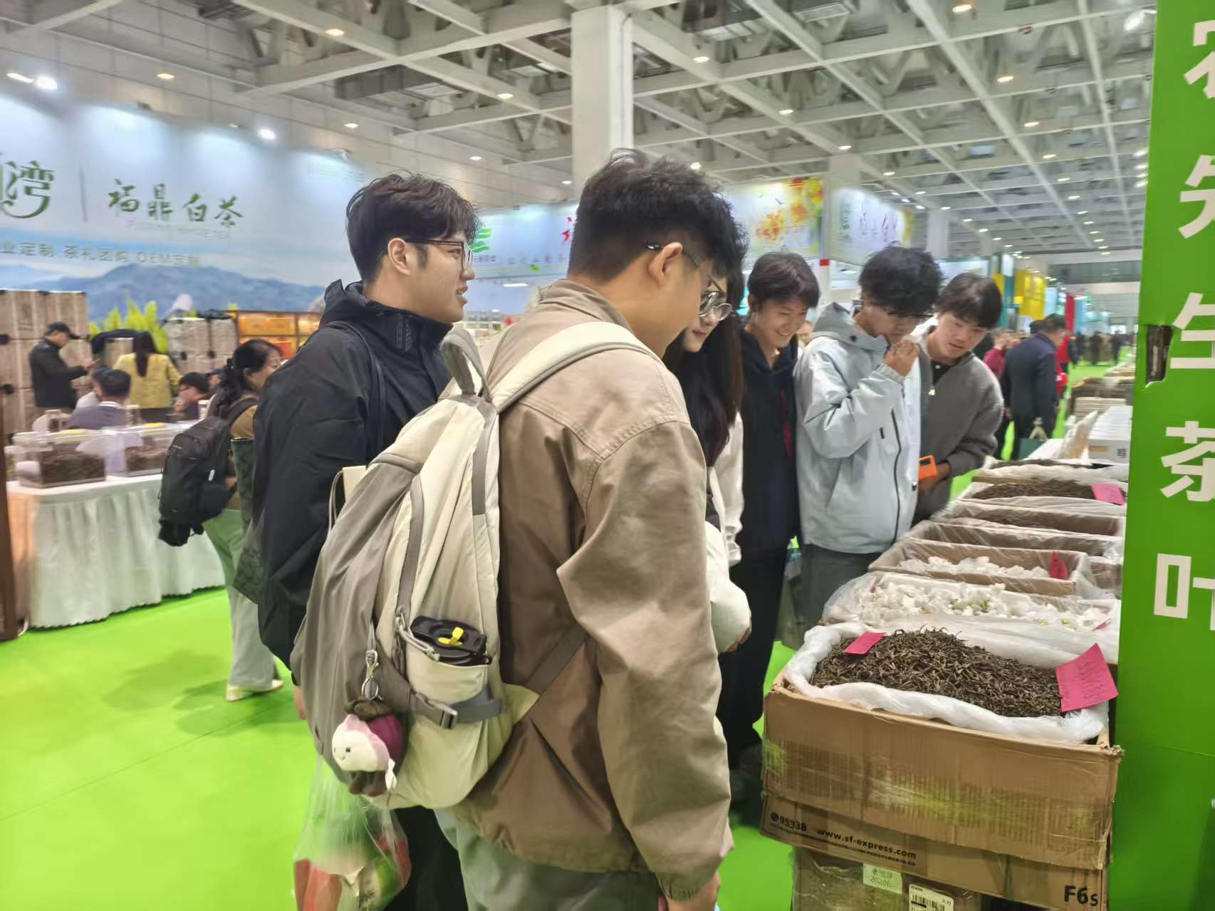 在“茶香中国・南北荟萃”核心展区,师生们手持品鉴手册逐展位行动:每到一个展位,大家先拿起干茶观察形态色泽,再凑近轻嗅香气,随后跟着工作人员学习用对应水温冲泡——有的茶需80℃温水,有的要用95℃以上热水,冲泡后看着茶汤颜色变化,小口啜饮尝味,还不时和同伴交流“原来不同茶的香气差别这么明显”,在一杯杯茶汤的品鉴中,慢慢摸透不同茶的口感与风味特点。
