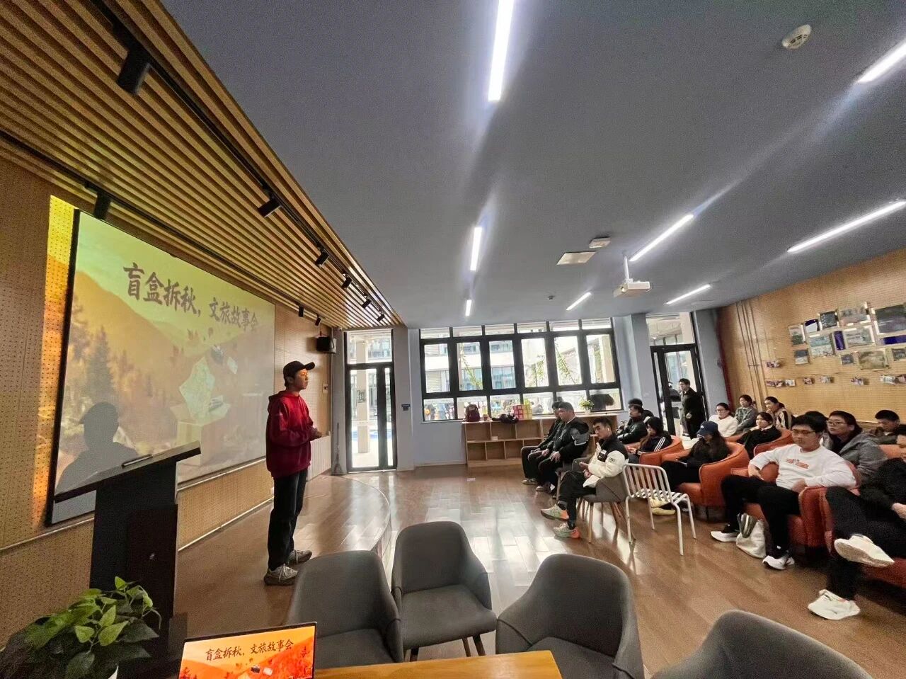 2025年10月29日当文旅社团的 “盲盒拆秋” 故事分享会落下帷幕,那些藏在风景里的感动、裹挟着惊喜的盲盒,不仅为秋日增添了一抹亮色,更勾勒出旅行与成长交织的深刻图景。这场以 “分享” 为核心、以 “盲盒” 为载体的活动,恰如一面镜子,映照出旅行的真谛 —— 不止于脚步的丈量,更在于心灵的共鸣;不止于风景的定格,更在于勇气的绽放。