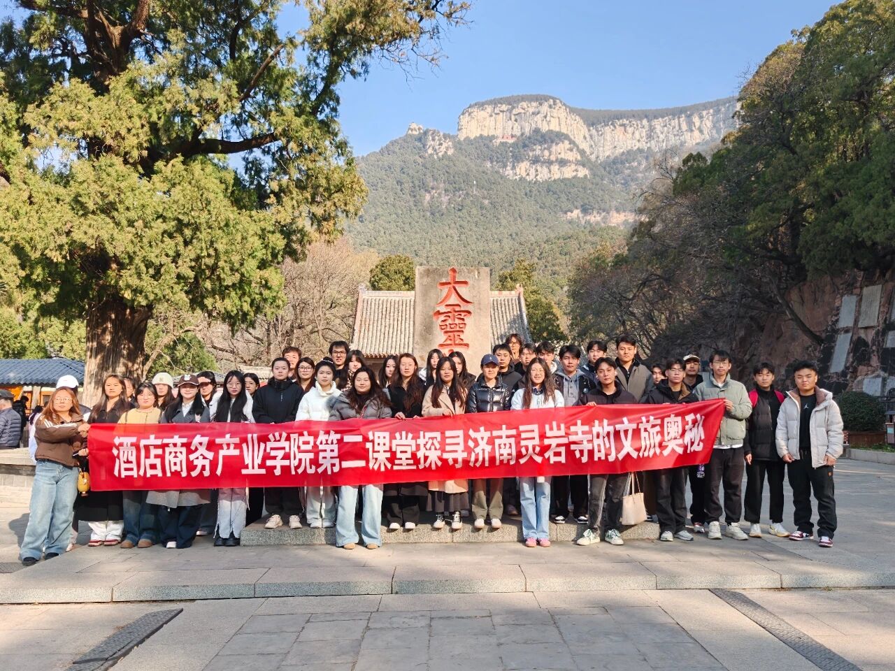 11月30日,酒店商务产业学院联合泰科文旅协会,组织酒店商务产业实训班学员走进济南灵岩寺景区开展实地研学。依托前期系统的摄影与短视频培训,学员们已熟练掌握文旅题材的拍摄构图、光影运用及内容策划技巧,此次研学正是检验成果、自主实践的绝佳契机,灵岩寺的古建群落、千年银杏、石刻艺术,更为大家的影像创作提供了丰沛素材。