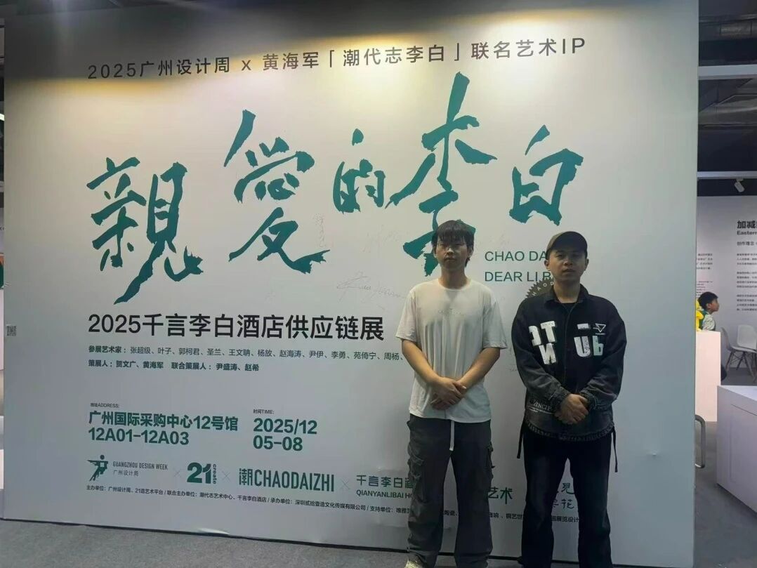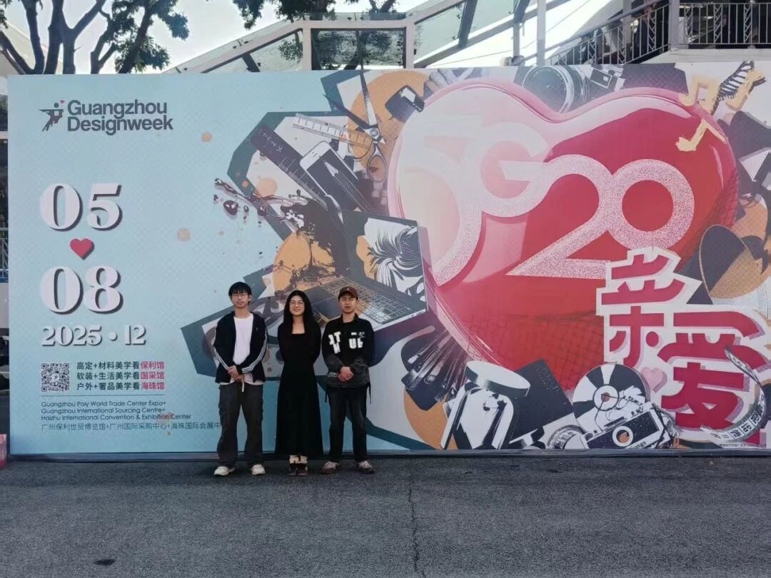为积极推动酒店商务产业学院教学实践的深度整合与创新发展,深化理论与实践融合,开拓学员视野、激发创新思维,2025 年 12 月 6 日,酒店商务产业学院赵琪琪老师带领第五期实训班学员杨思哲、王明升,跨越 1000 多公里前往广州,参与 2025 年广州设计周展会。
